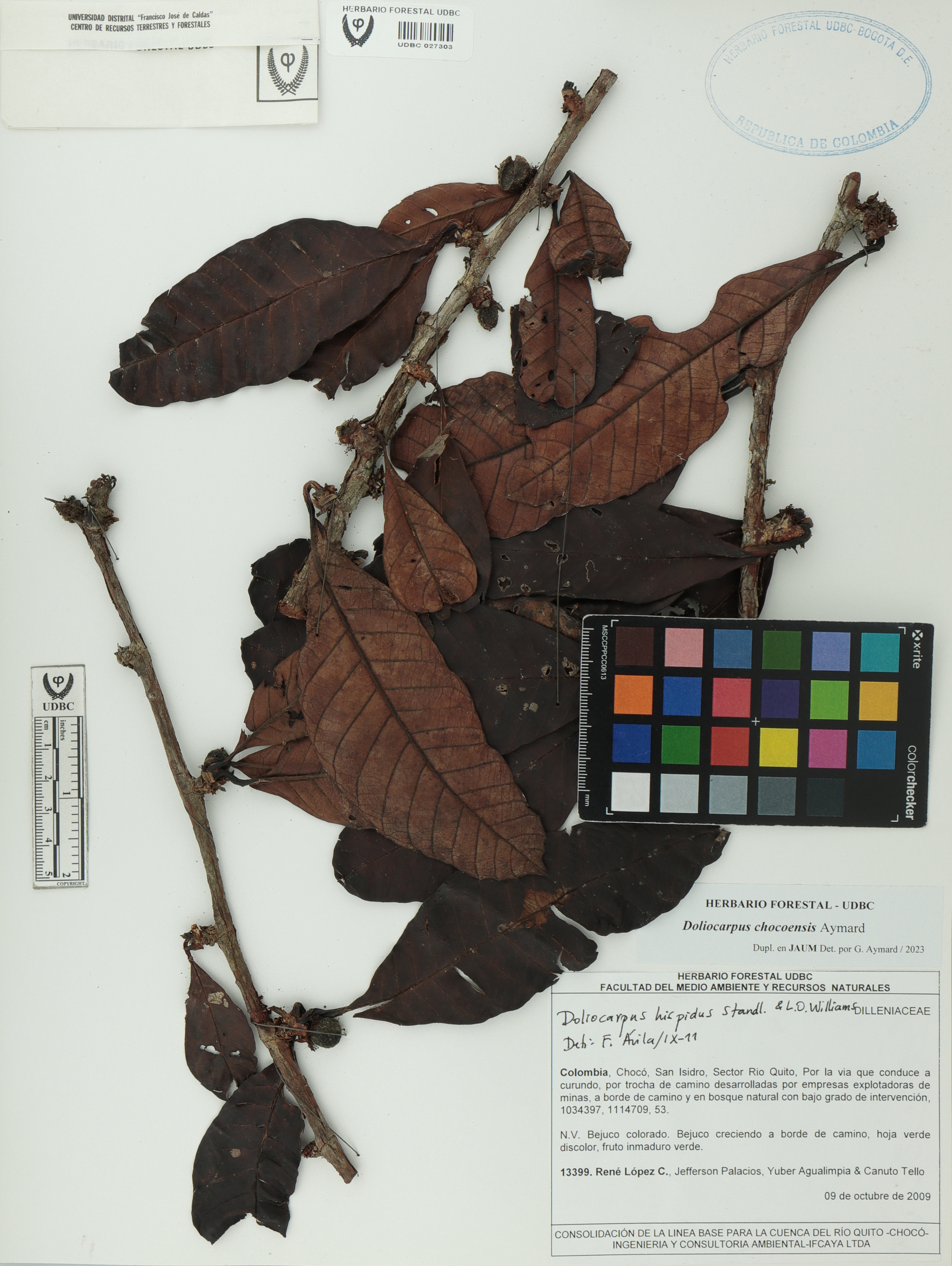 Fotografía del ejemplar López, R. 13399, determinado como Doliocarpus chocoensis en el año 2023