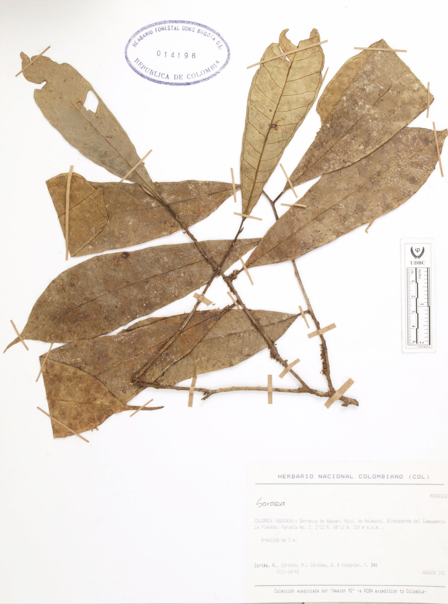 Fotografía del ejemplar Cortés-B., R. 340, determinado como Sorocea sp.