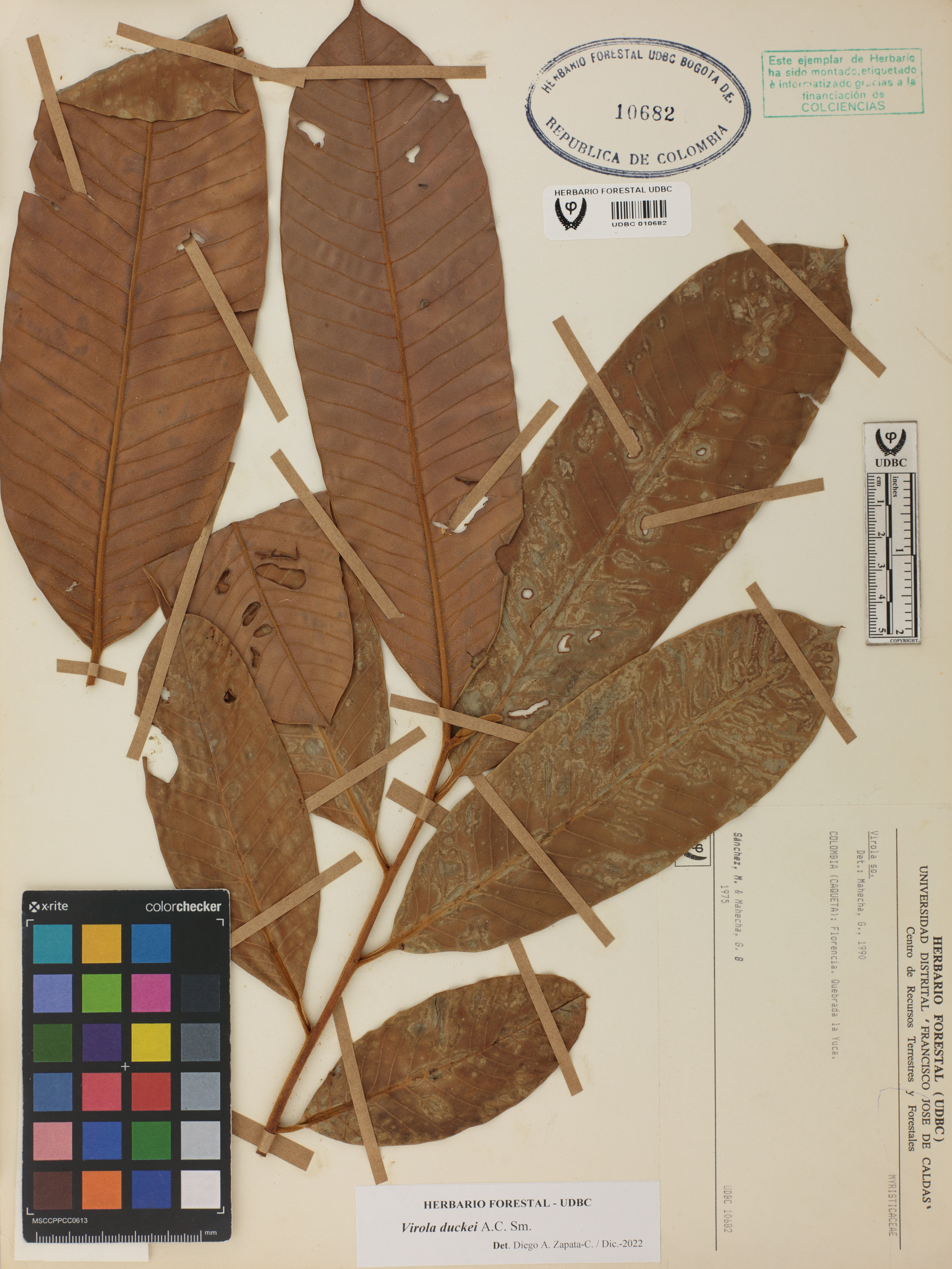Fotografía del ejemplar Sánchez, M. 8, determinado como Virola duckei en el año 2022
