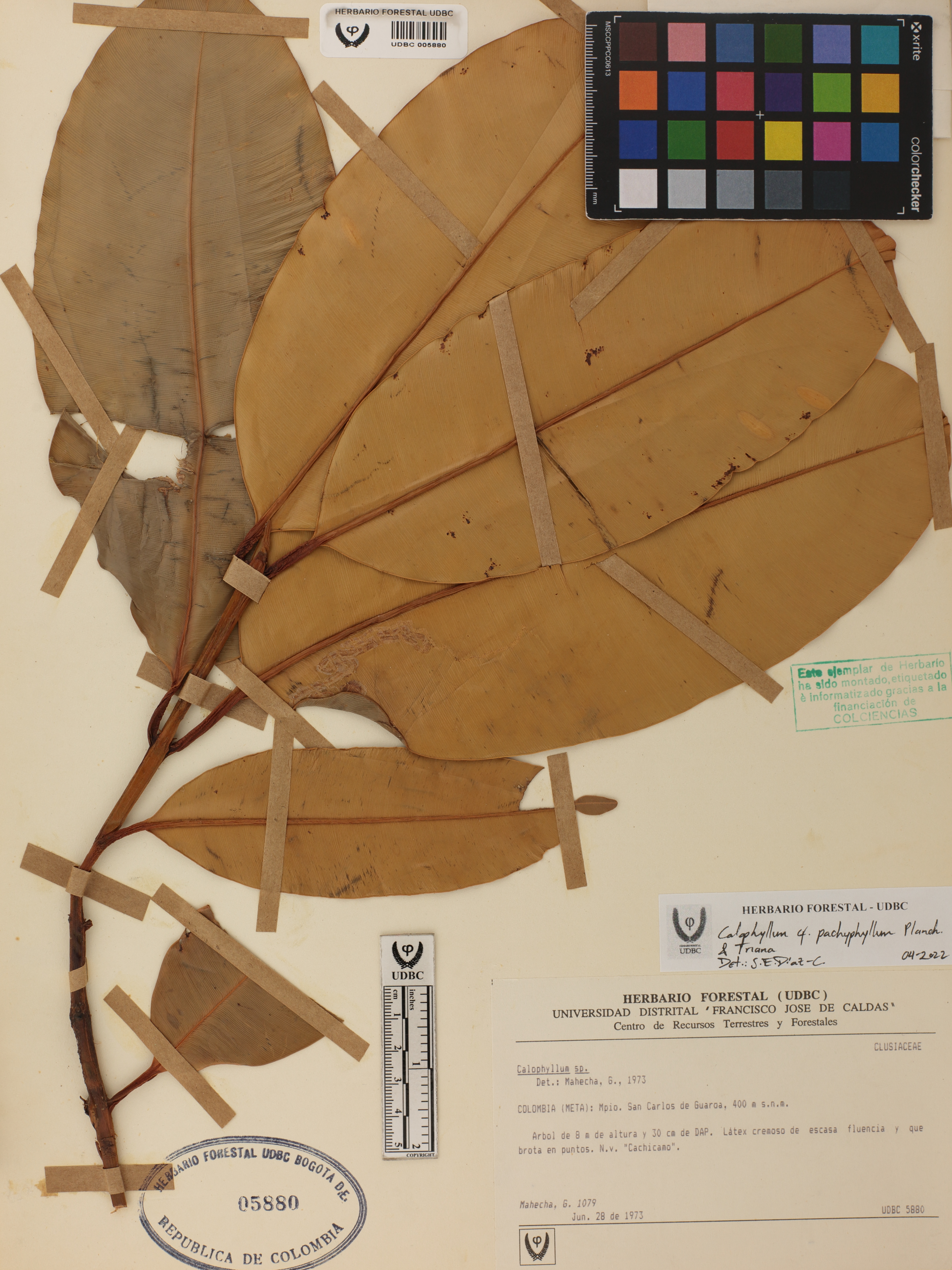 Fotografía del ejemplar Mahecha, G. 1079, determinado como Calophyllum pachyphyllum en el año 2022