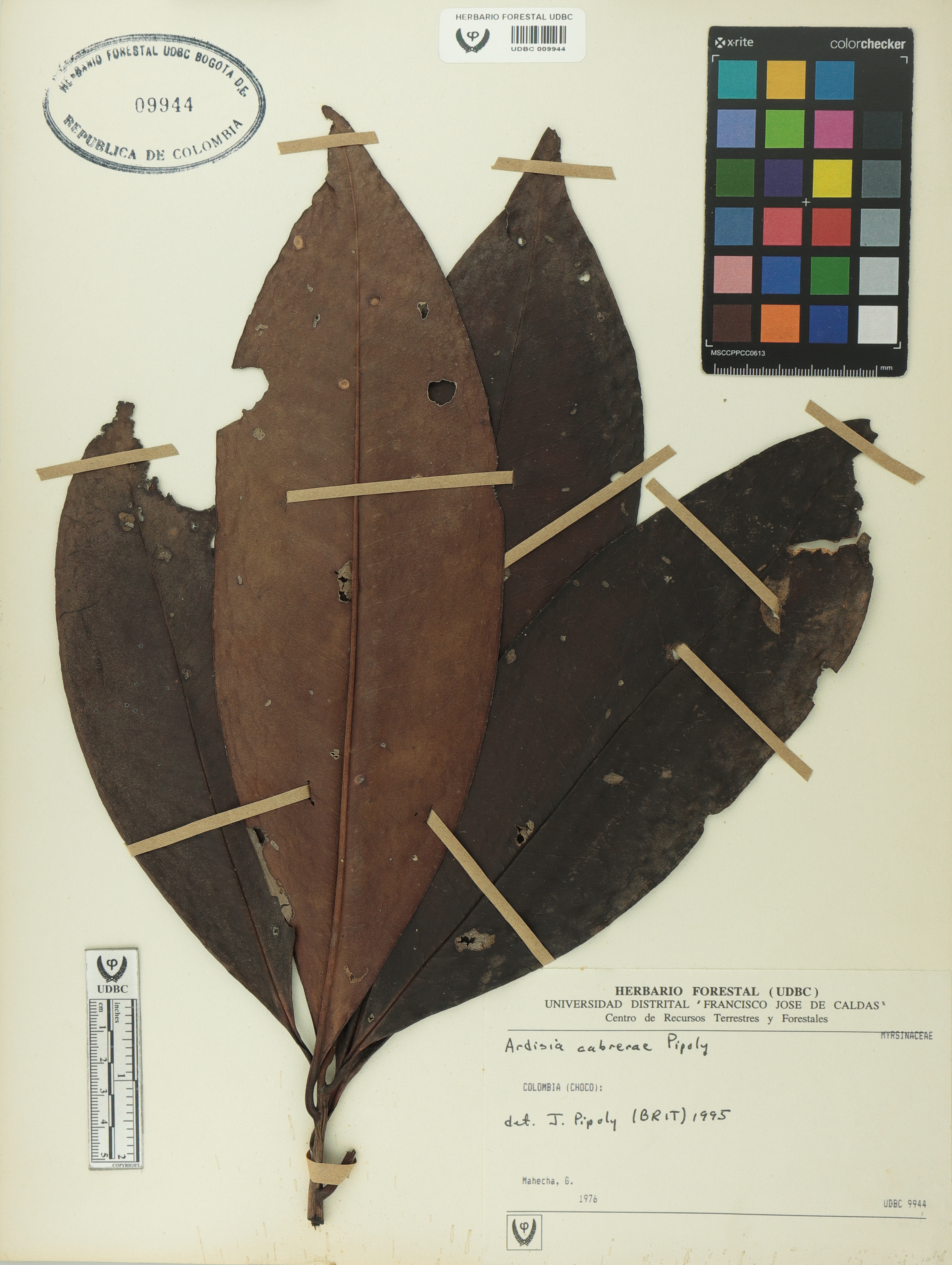 Fotografía del ejemplar Mahecha, G., determinado como Ardisia cabrerae en el año 1995