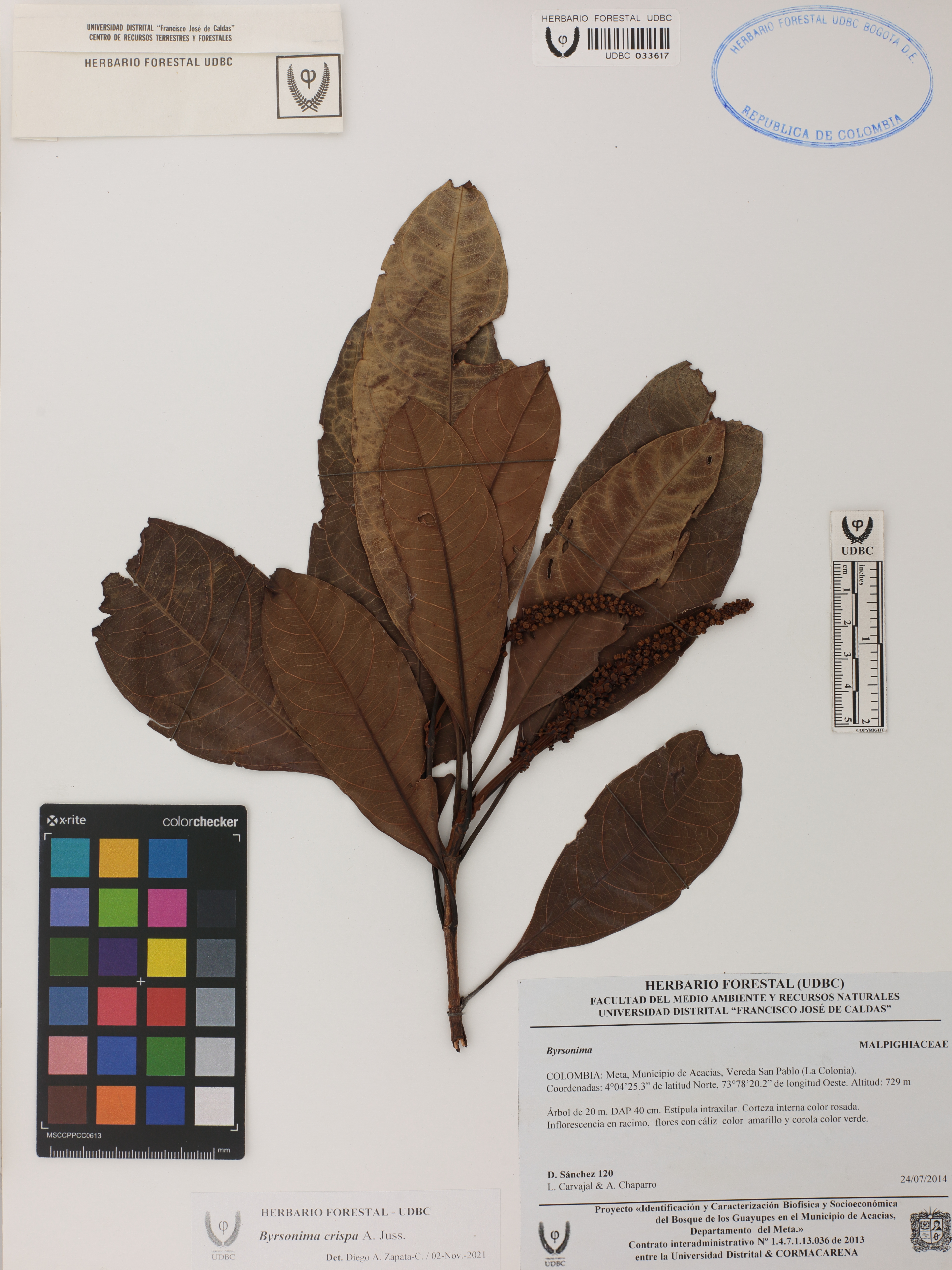 Fotografía del ejemplar Sánchez, D. 120, determinado como Byrsonima crispa en el año 2021