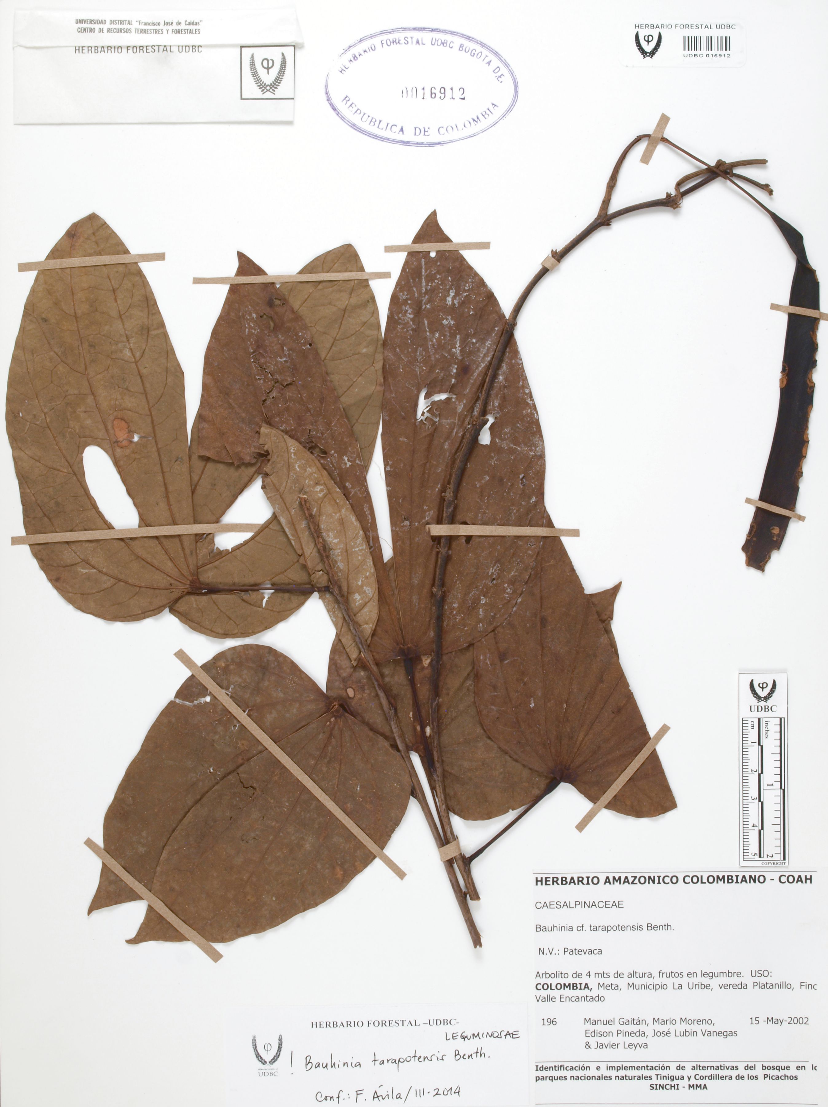 | dc.description | Fotografía del ejemplar Gaitán, M. 196, determinado como Bauhinia tarapotensis en el año 2014 | |