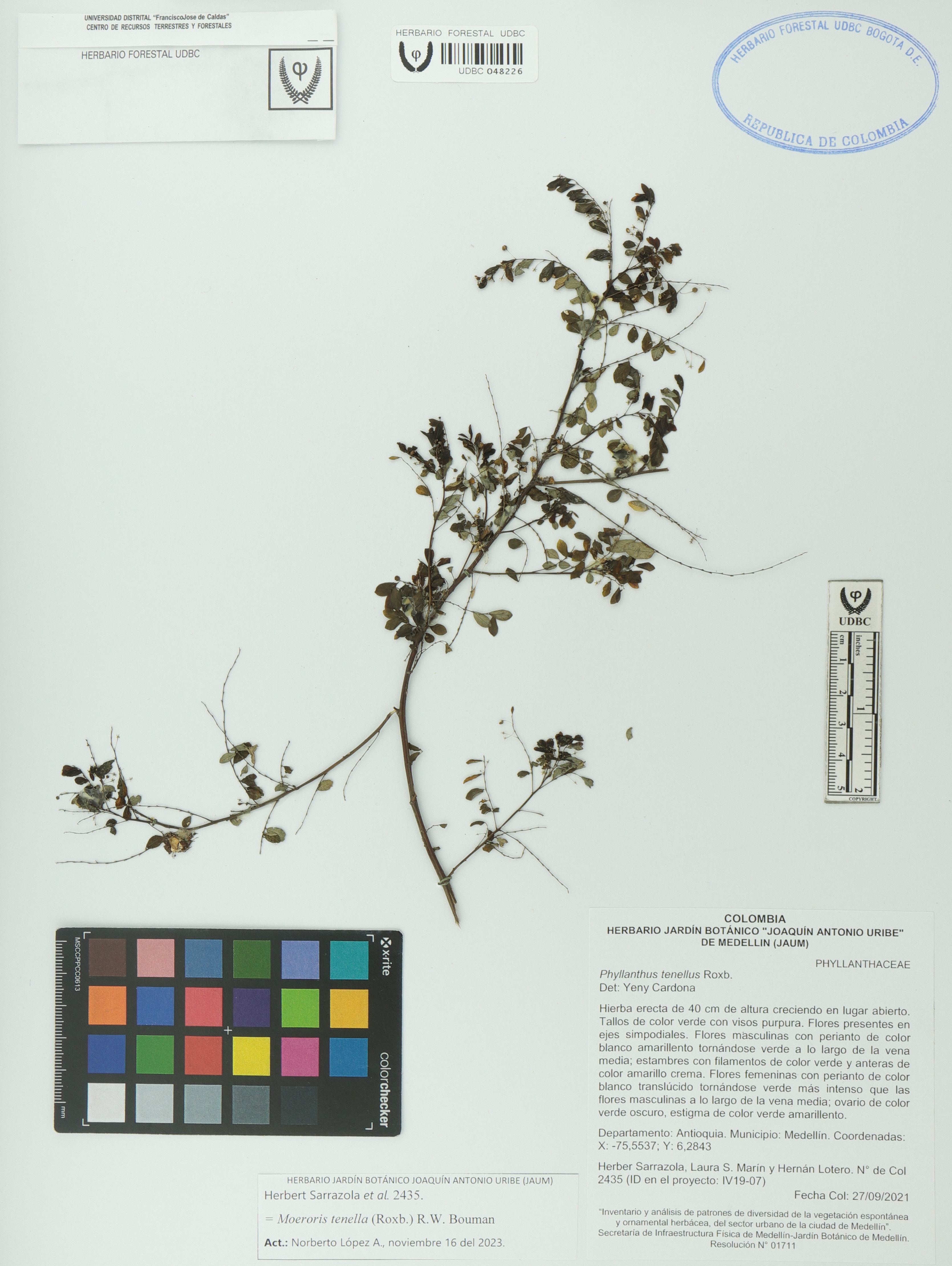 Fotografía del ejemplar Sarrazola, H. 2435, determinado como Moeroris tenella en el año 2023