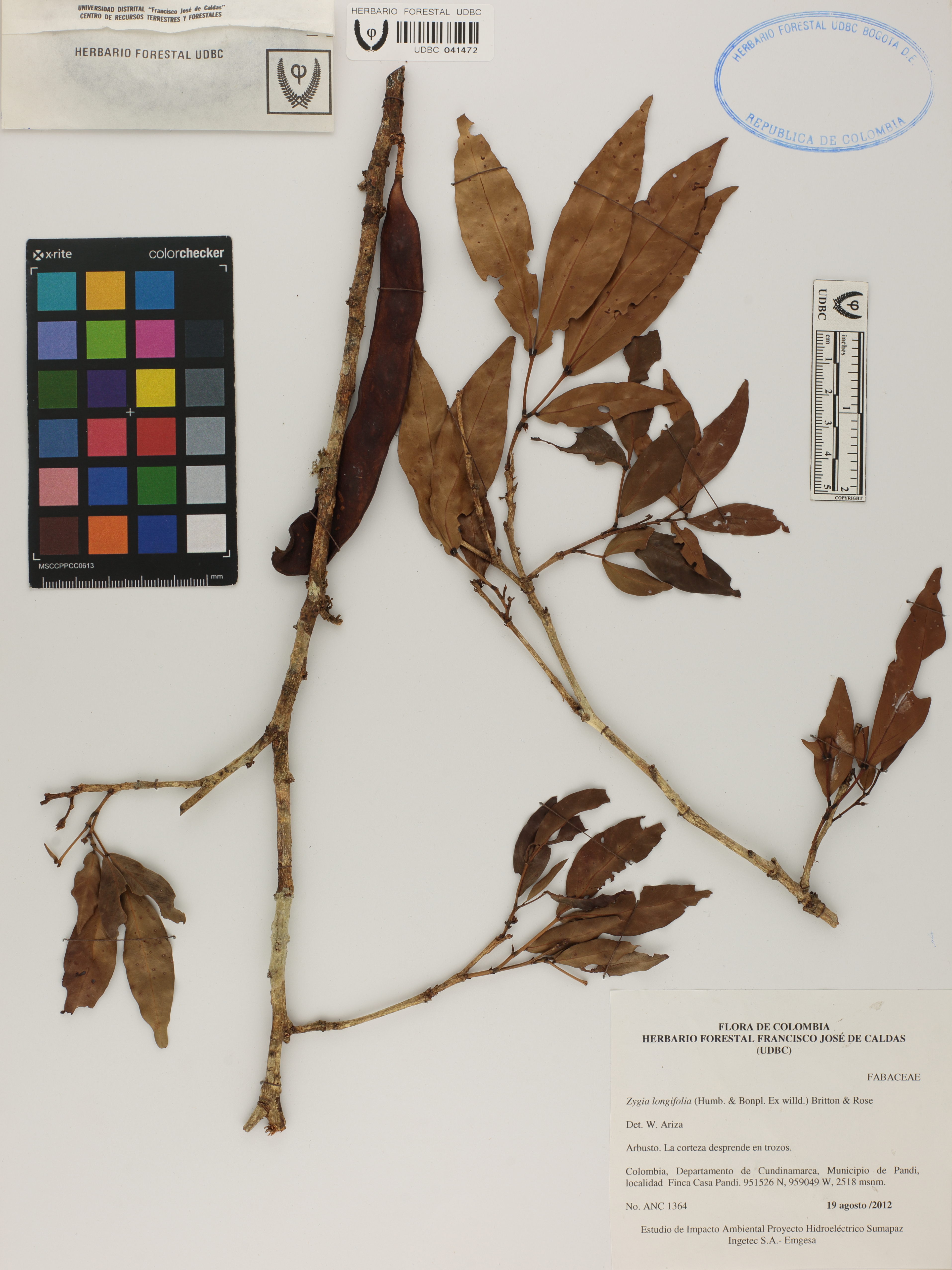 Fotografía del ejemplar SD 1364, determinado como Zygia longifolia