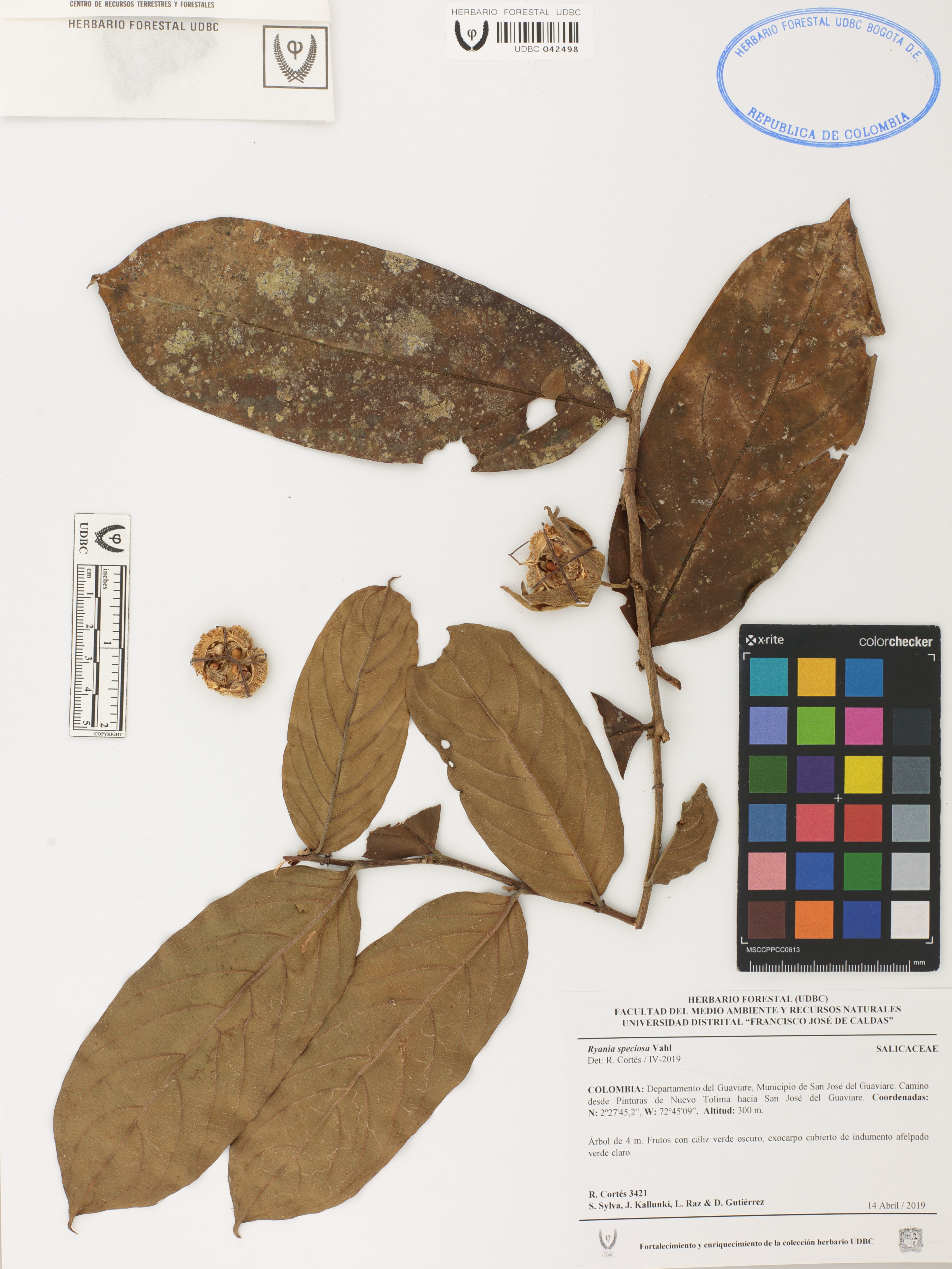 Fotografía del ejemplar Cortés, R. 3421, determinado como Ryania speciosa en el año 2019