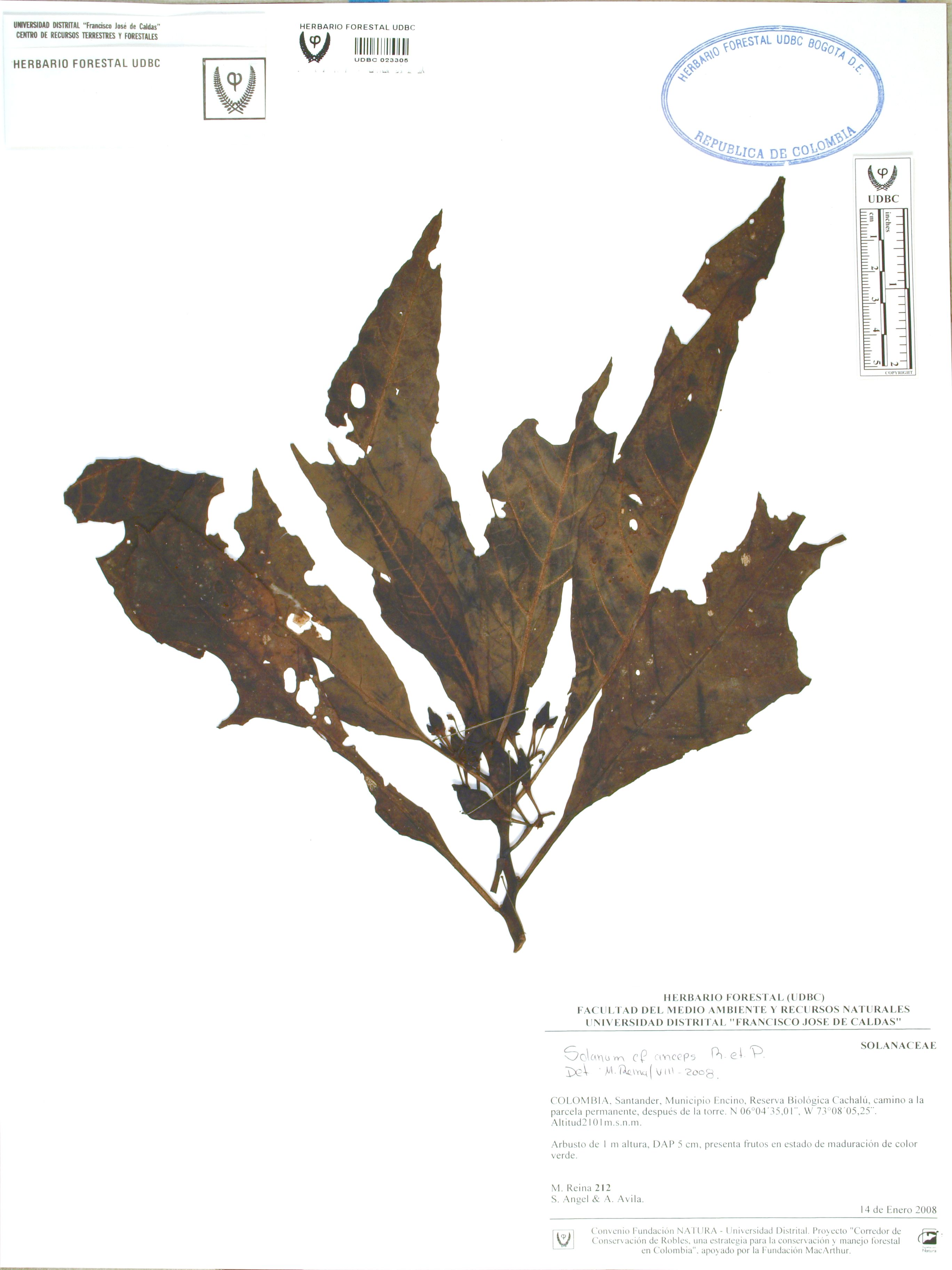 Fotografía del ejemplar Reina, M. 212, determinado como Solanum anceps en el año 2008