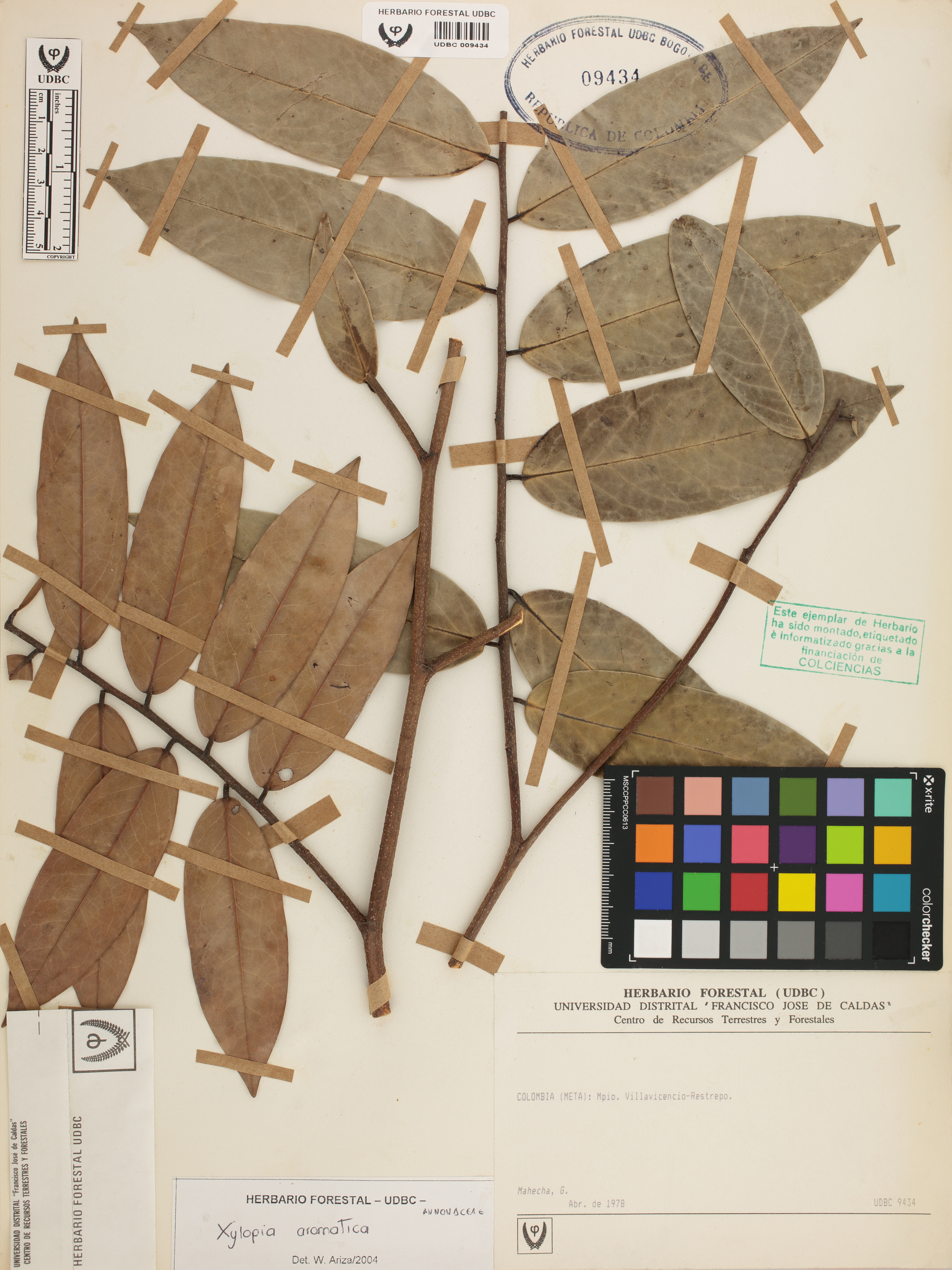 Fotografía del ejemplar Mahecha, G., determinado como Xylopia aromatica en el año 2004