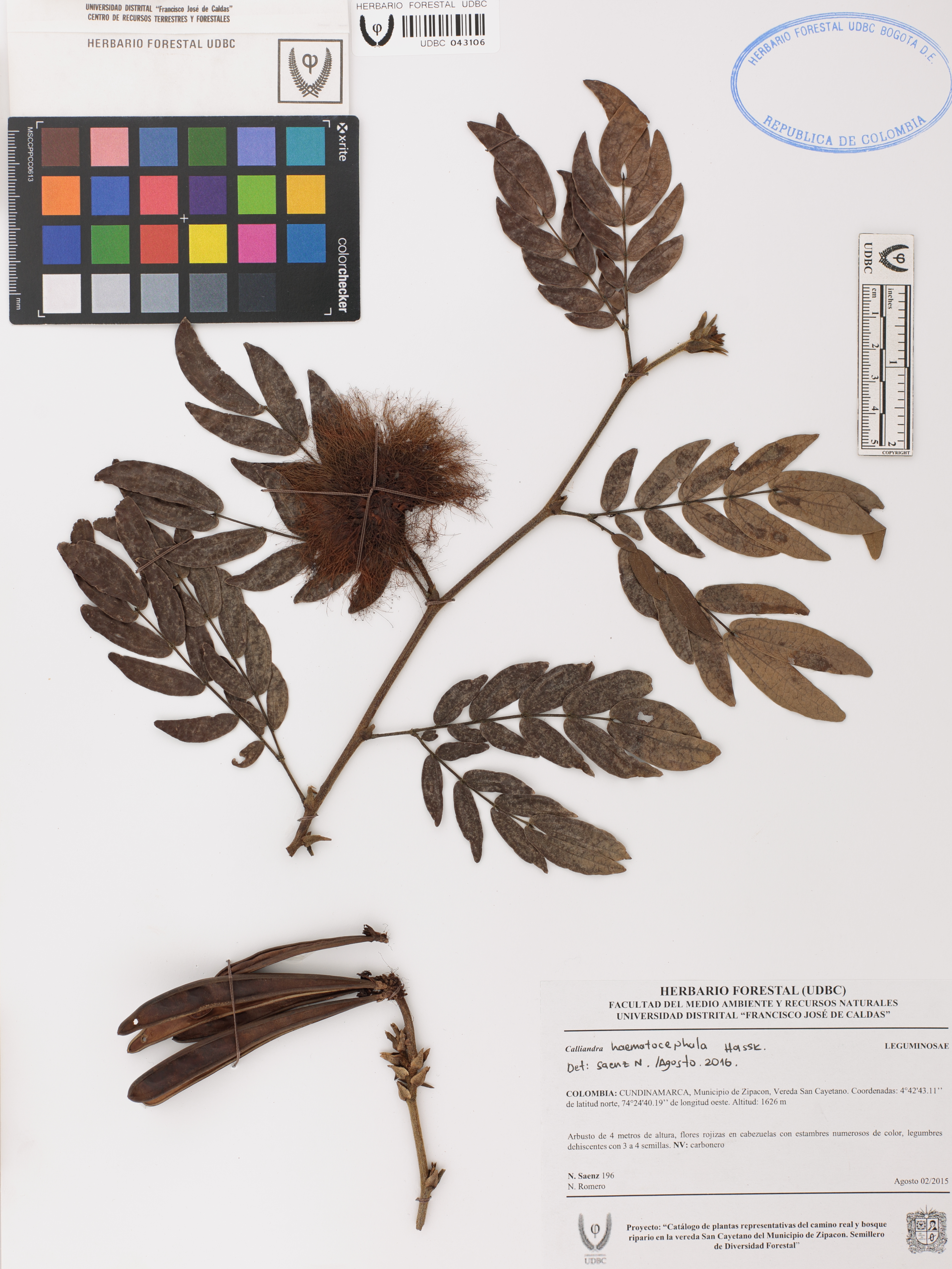 Fotografía del ejemplar Sáenz, N. 196, determinado como Calliandra haematocephala en el año 2016