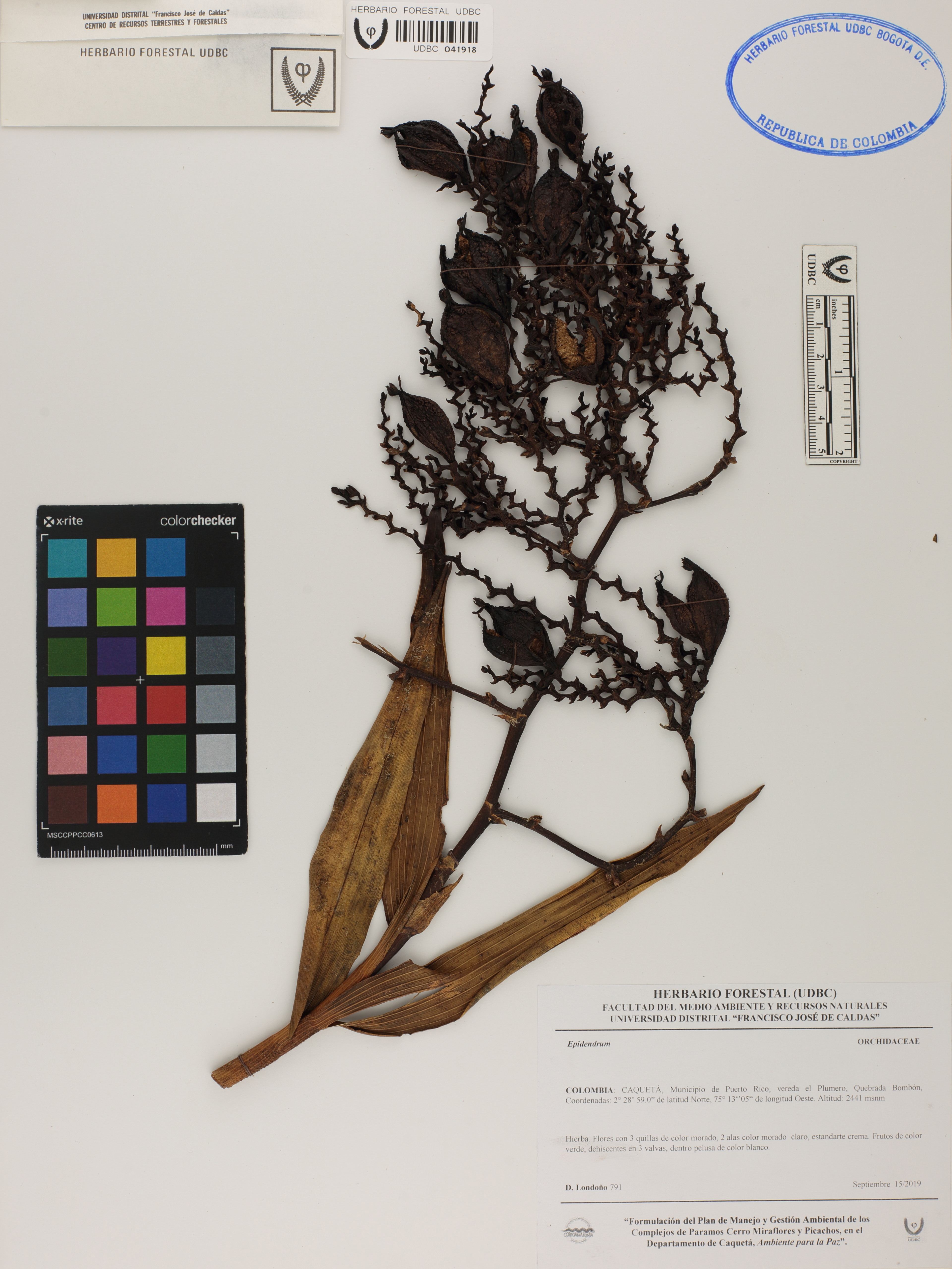 Fotografía del ejemplar Londoño, D. 791, determinado como Epidendrum sp.