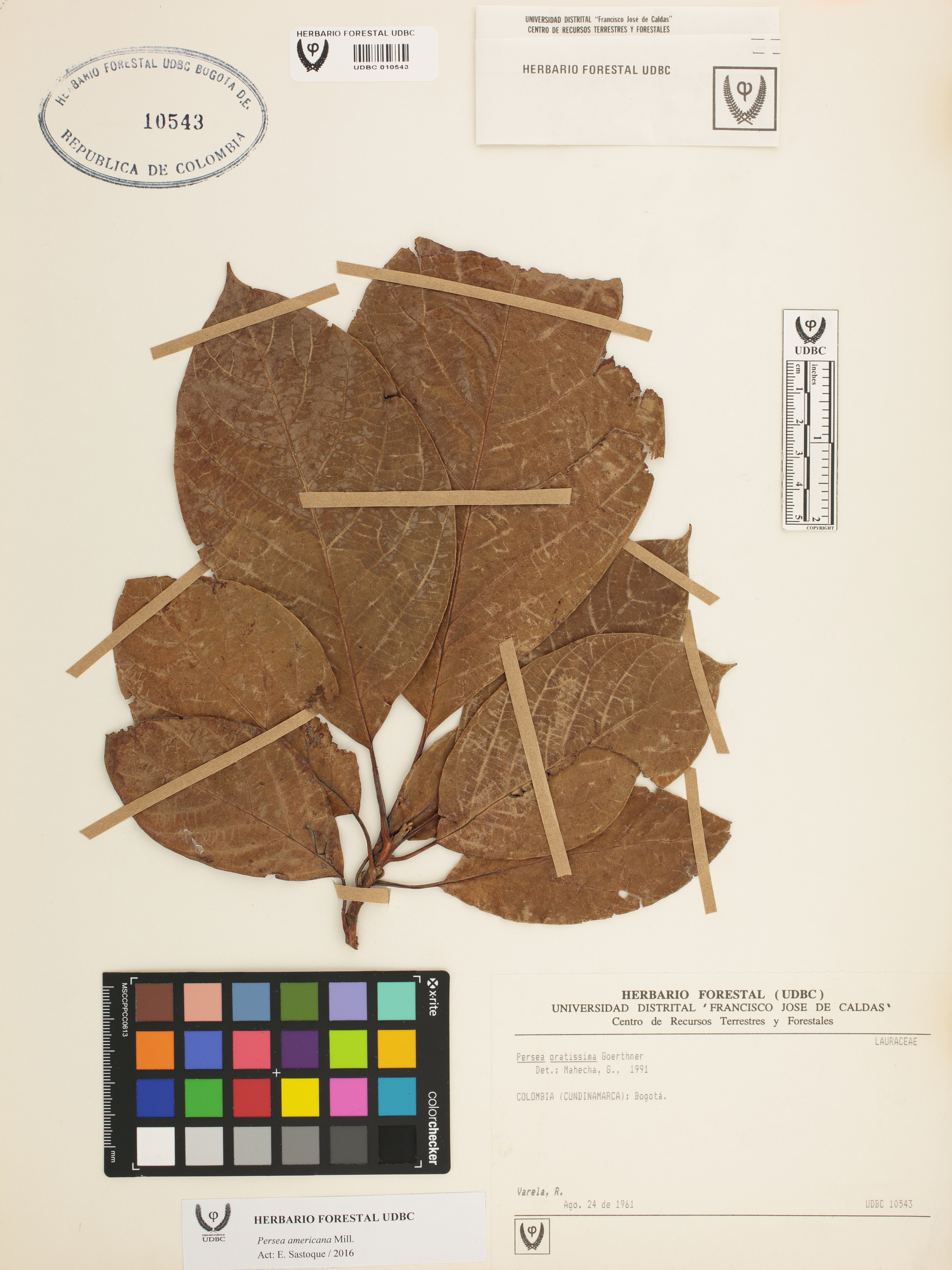 Fotografía del ejemplar Varela, R., determinado como Persea americana en el año 1991