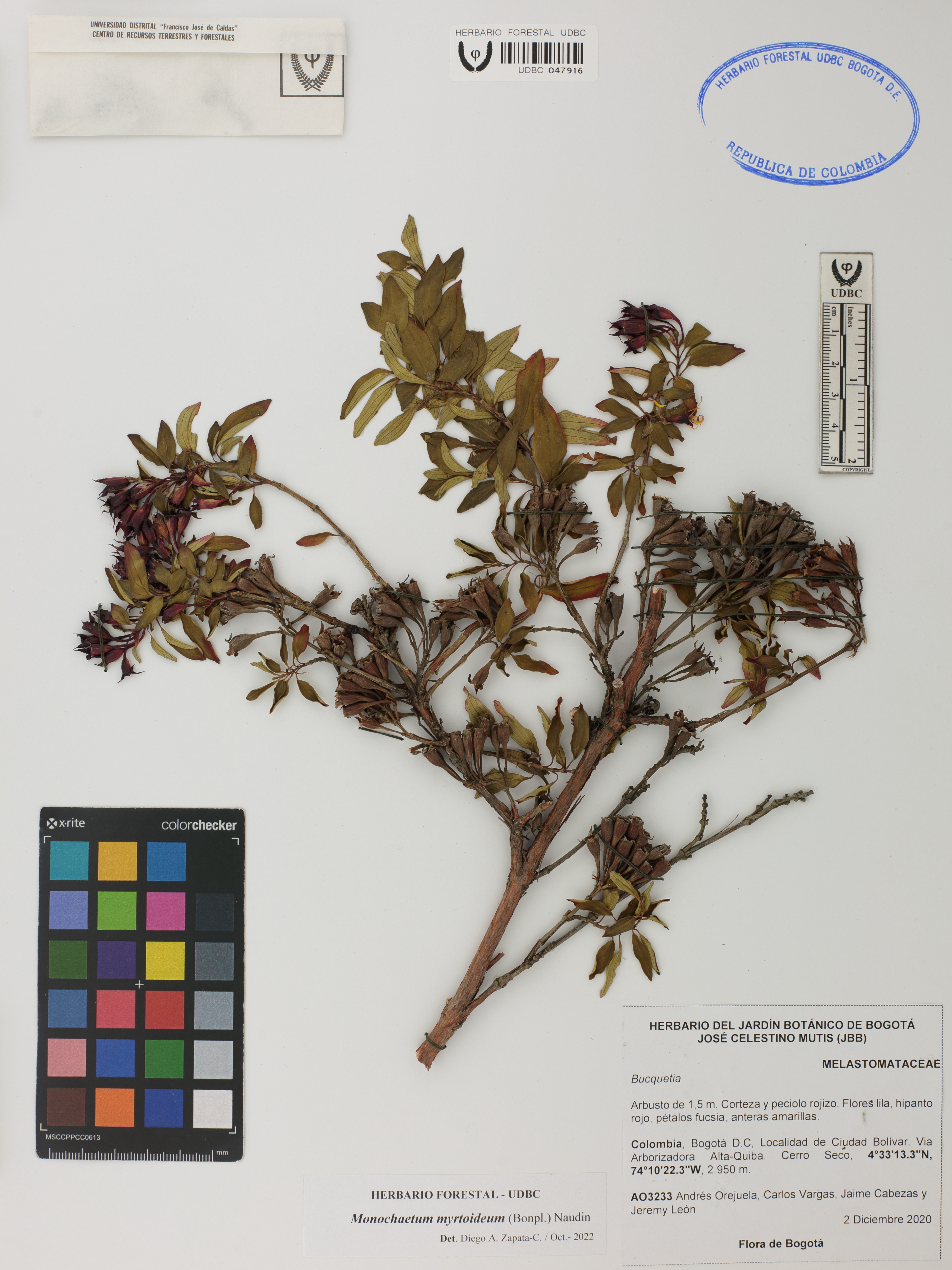 Fotografía del ejemplar Orejuela, A. 3233, determinado como Monochaetum myrtoideum en el año 2022