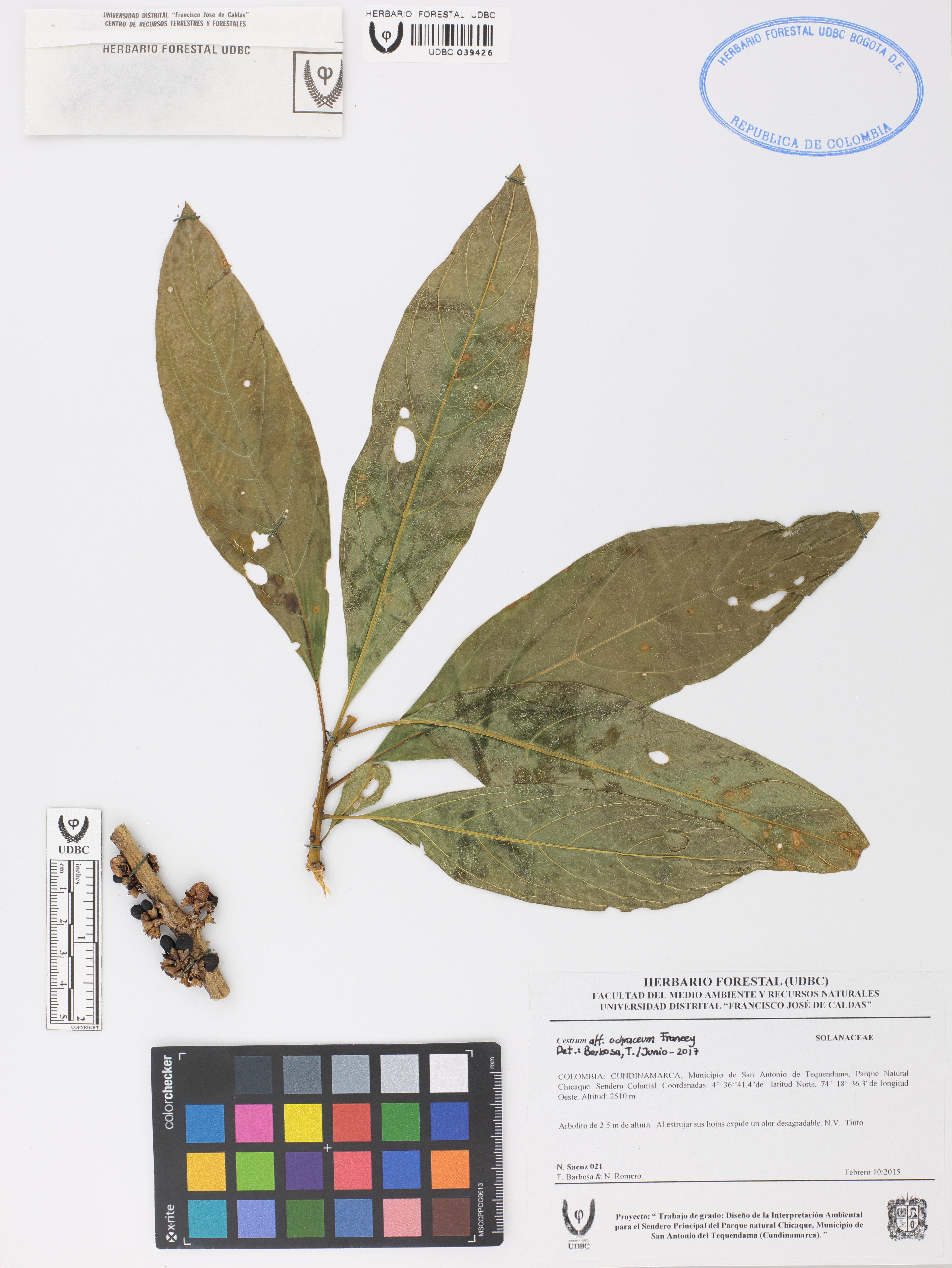 Fotografía del ejemplar Sáenz, N. 21, determinado como Cestrum ochraceum en el año 2017