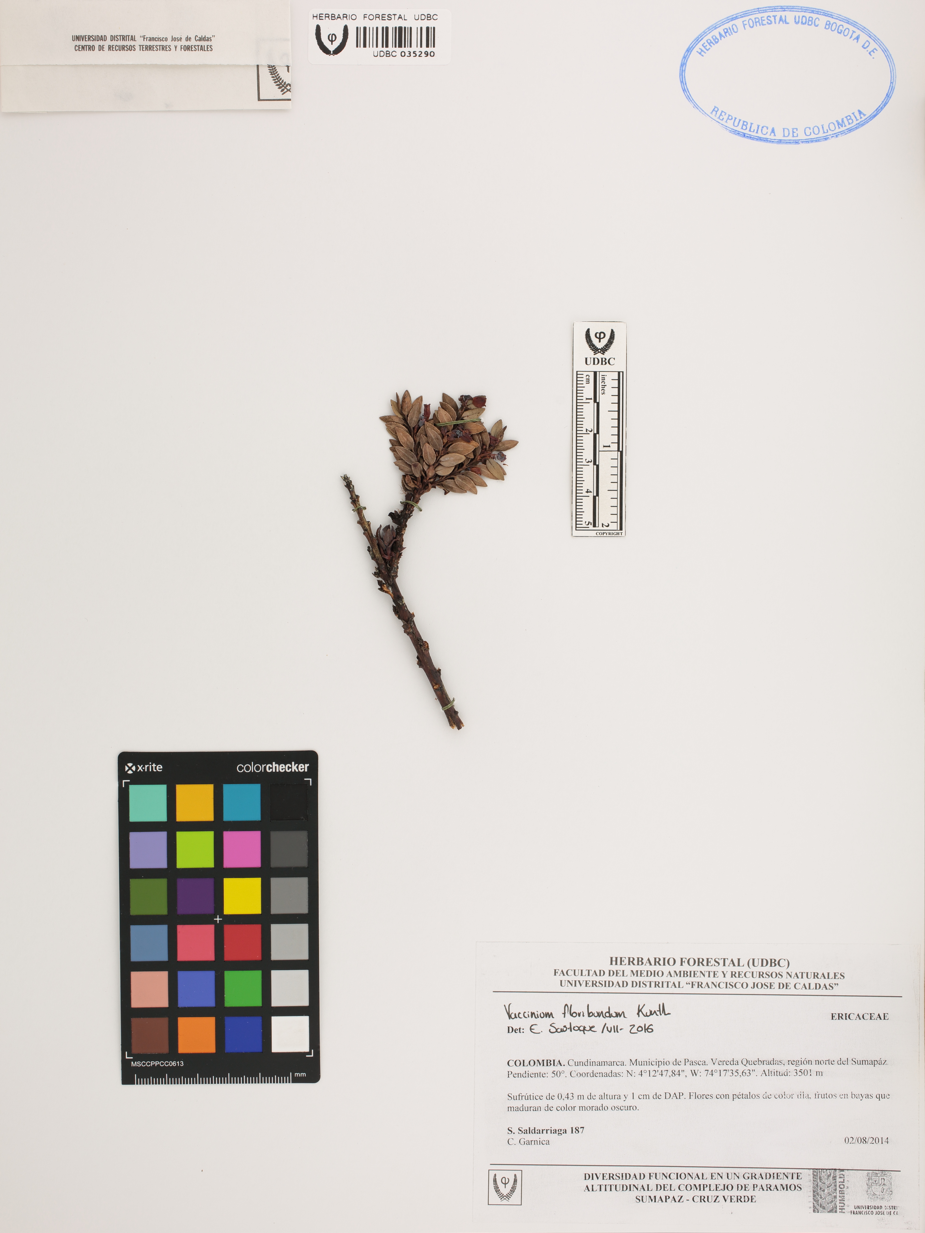 Fotografía del ejemplar Saldarriaga, S. 187, determinado como Vaccinium floribundum en el año 2016