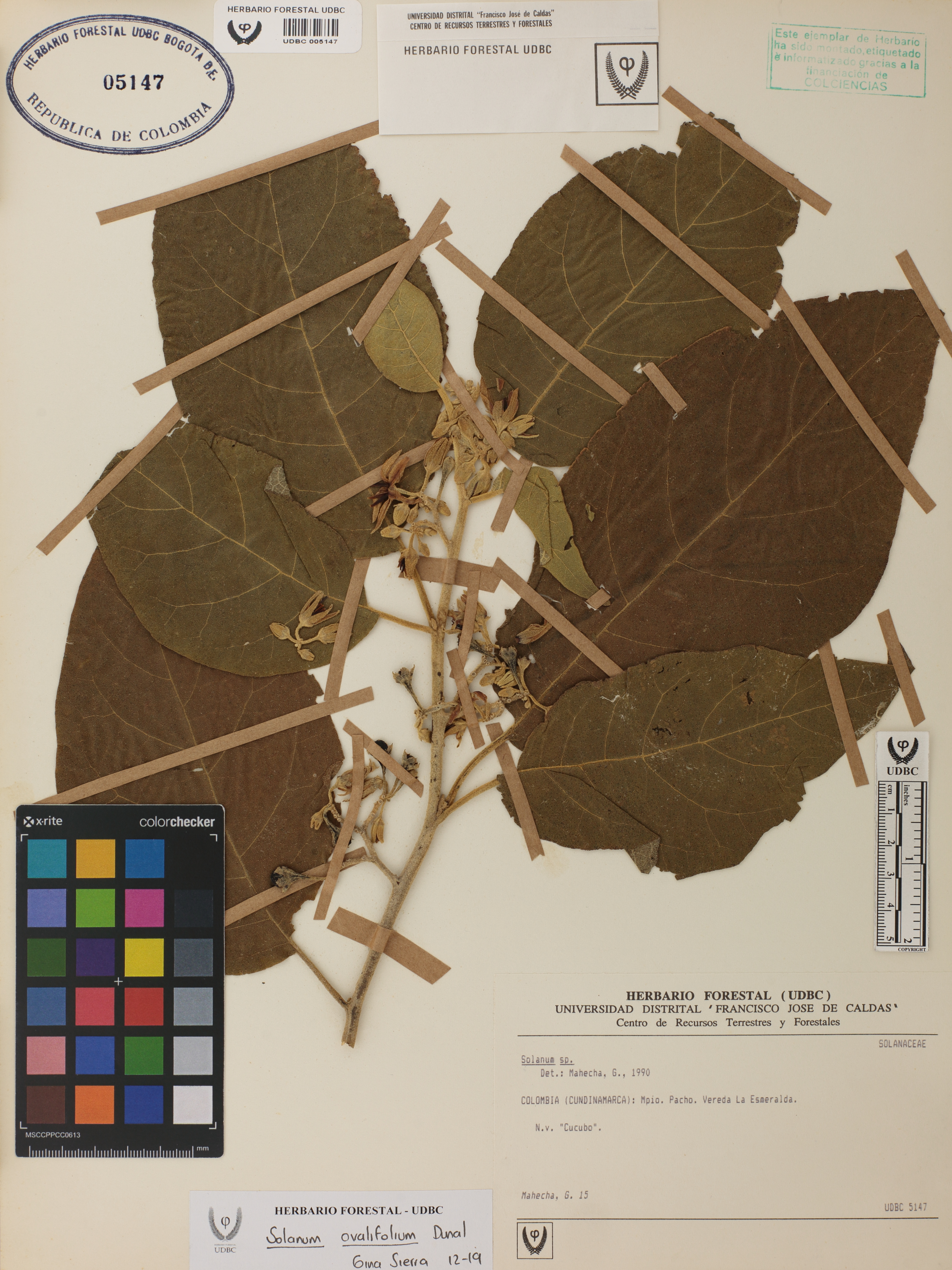 Fotografía del ejemplar Mahecha, G. 15, determinado como Solanum ovalifolium en el año 2019
