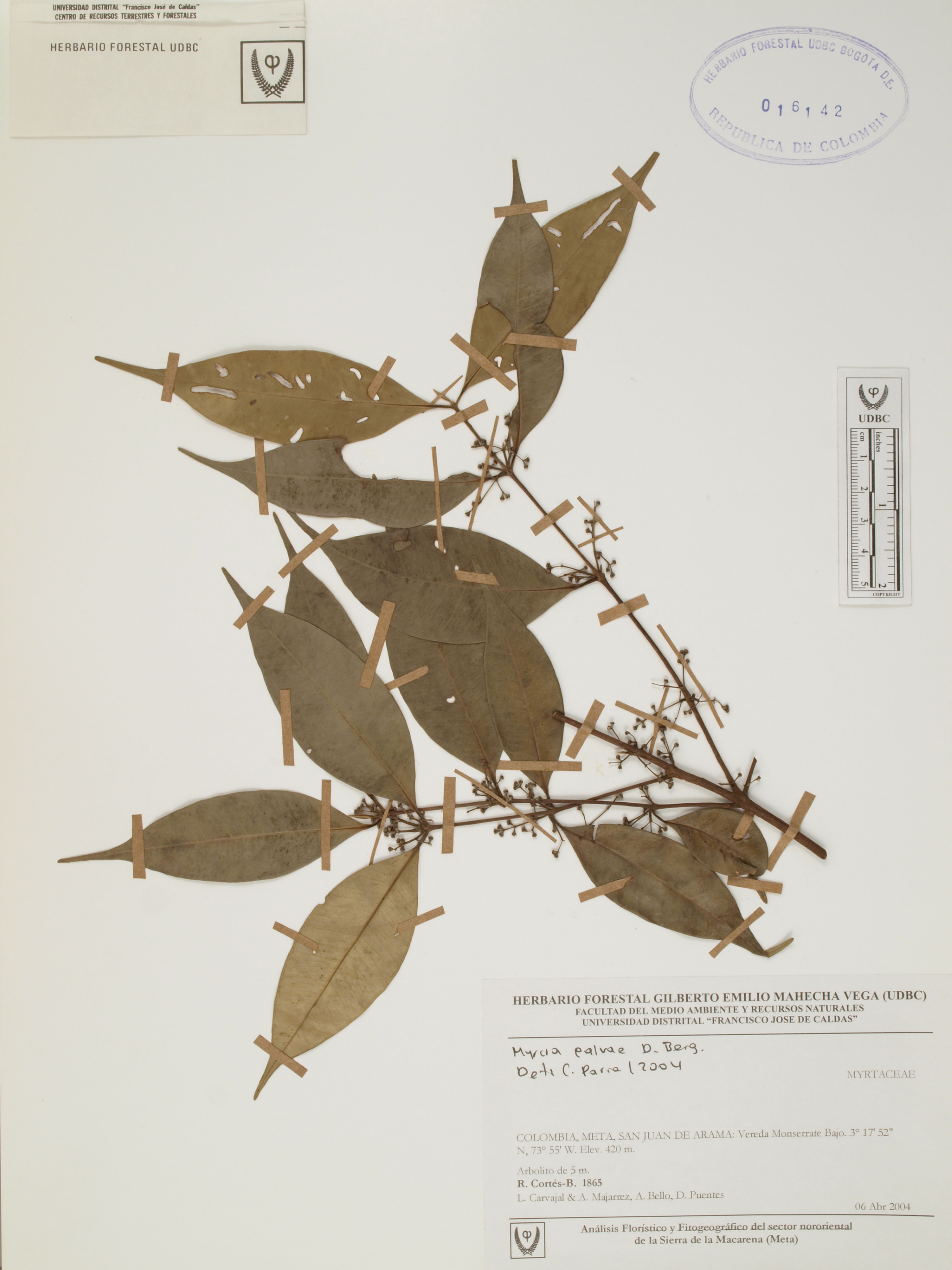 Fotografía del ejemplar Cortés-B., R. 1865, determinado como Myrcia paivae en el año 2004