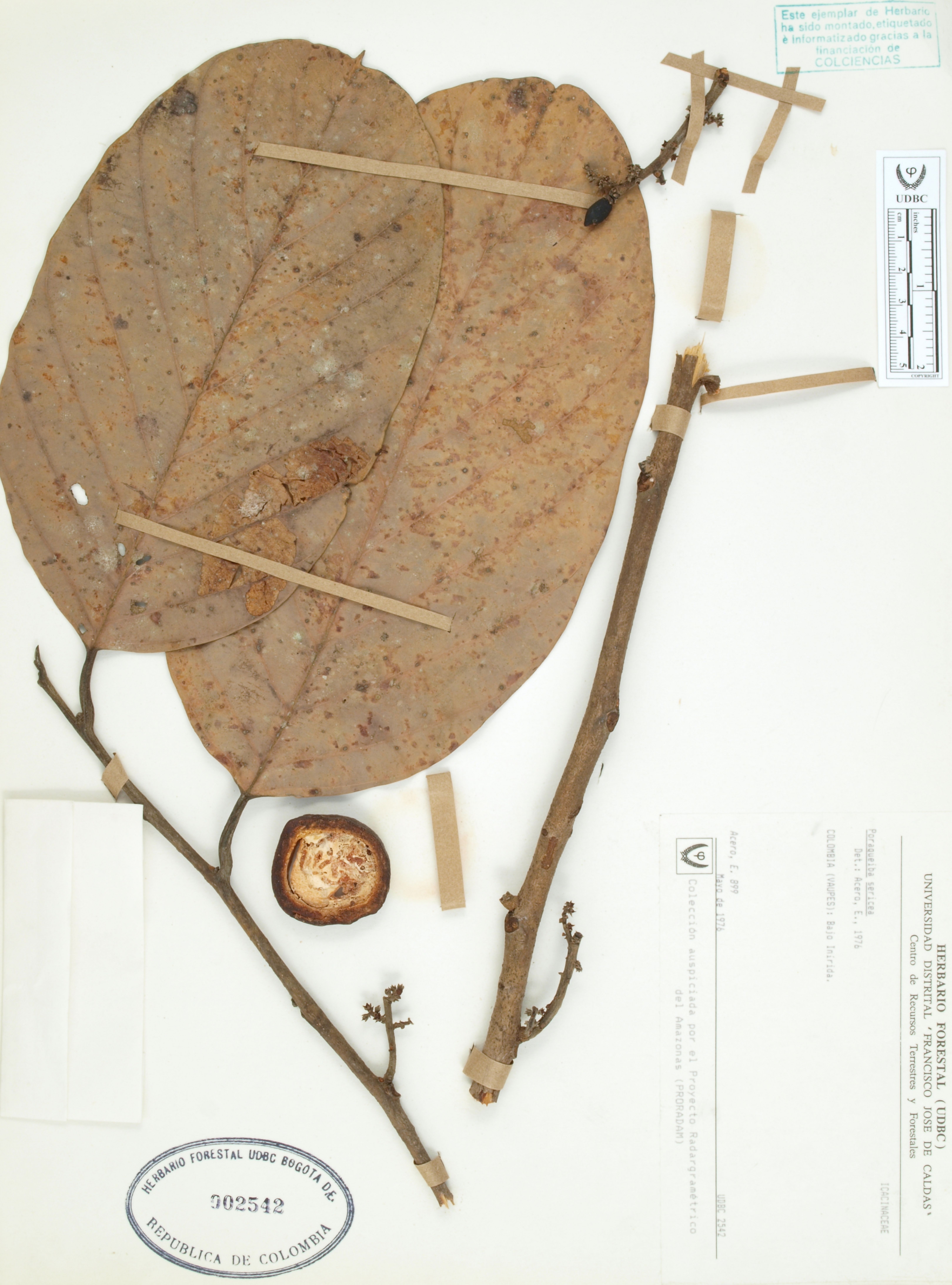 | dc.description | Fotografía del ejemplar Acero, E. 899, determinado como Poraqueiba sericea en el año 1976 | |