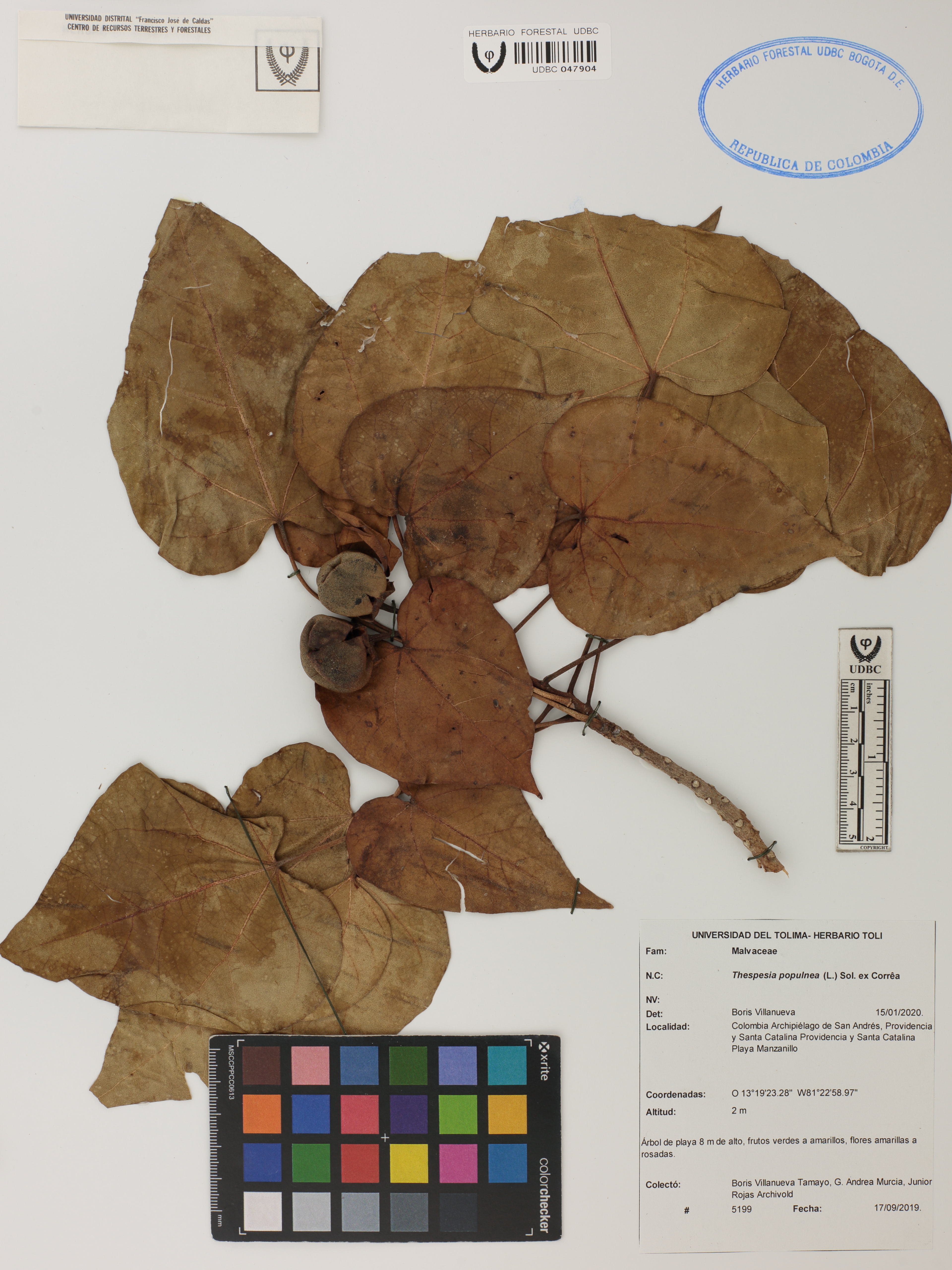 Fotografía del ejemplar Villanueva, B. 5199, determinado como Thespesia populnea en el año 2020