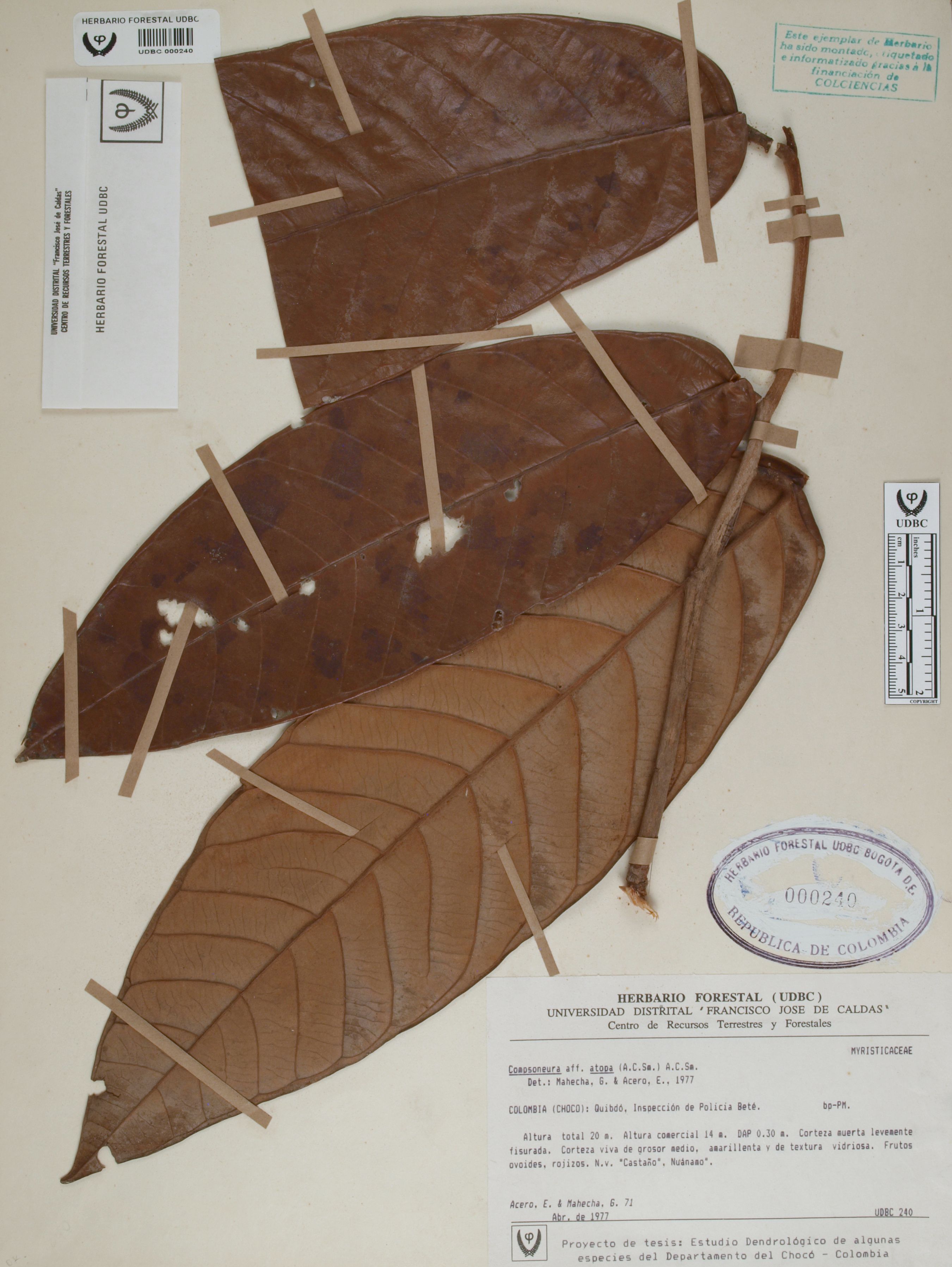 | dc.description | Fotografía del ejemplar Acero, E. 71, determinado como Compsoneura atopa en el año 1977 | |