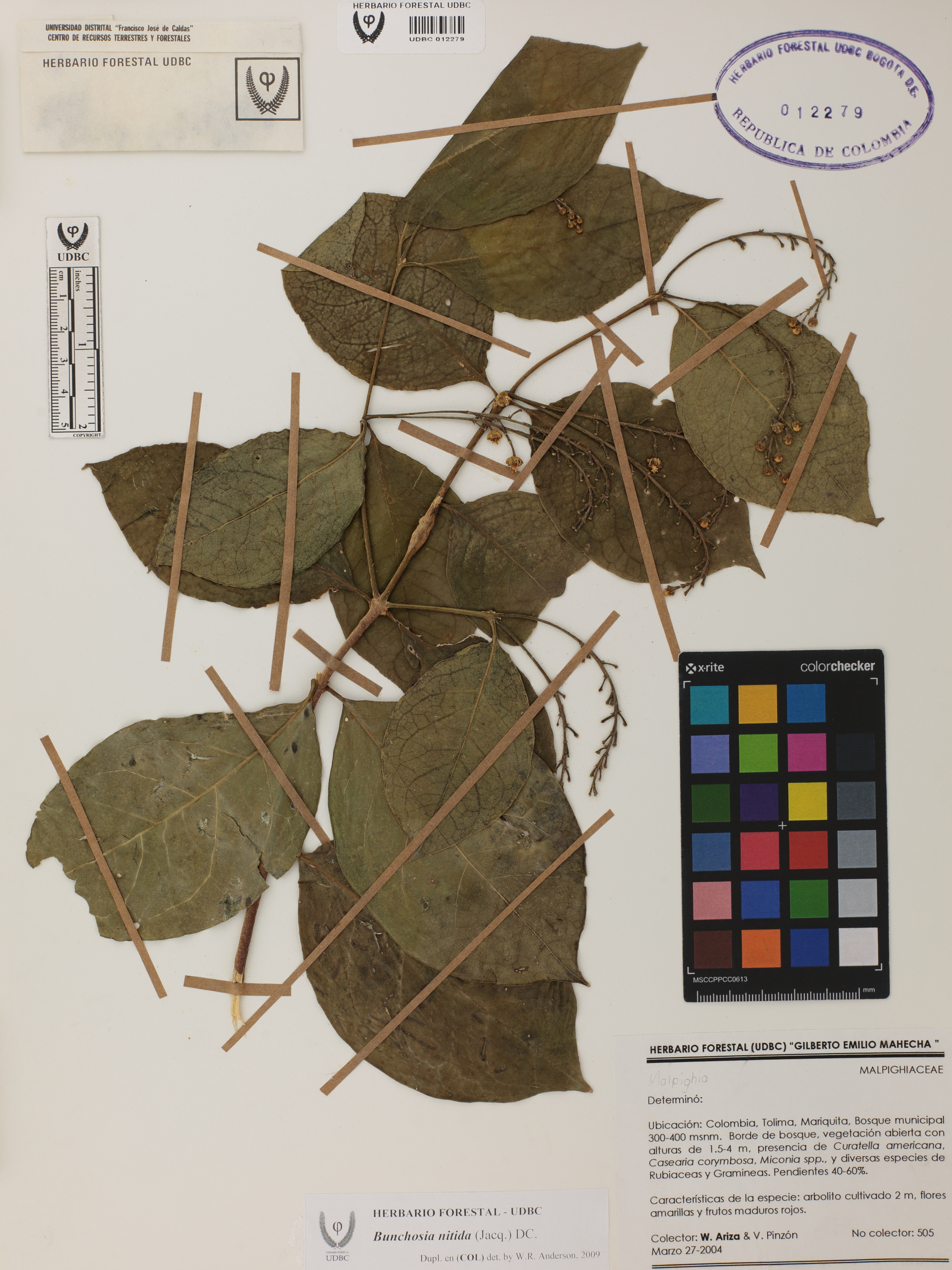 Fotografía del ejemplar Ariza, W. 505, determinado como Bunchosia nitida en el año 2009