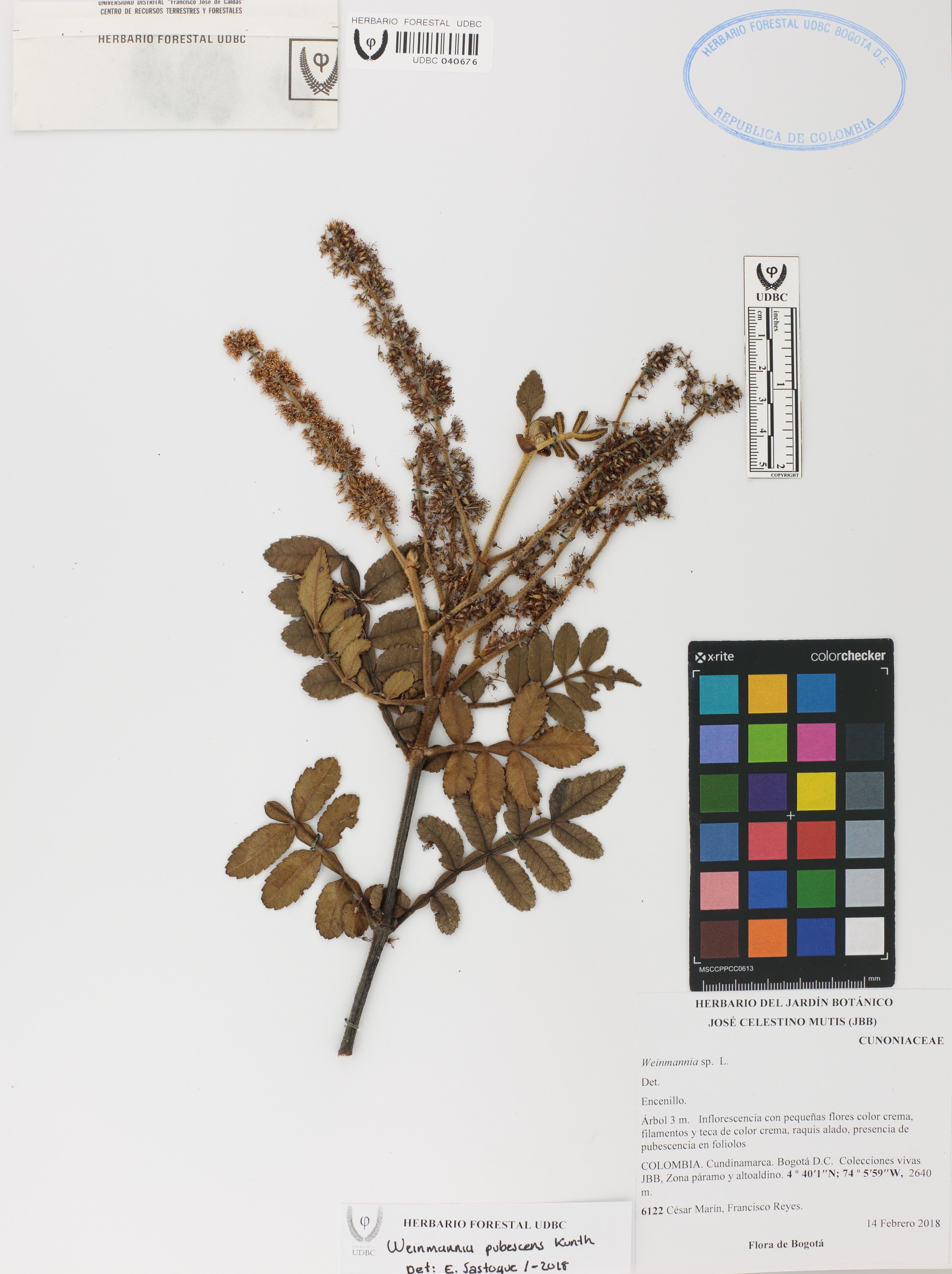 Fotografía del ejemplar Marín, C. 6122, determinado como Weinmannia pubescens en el año 2018