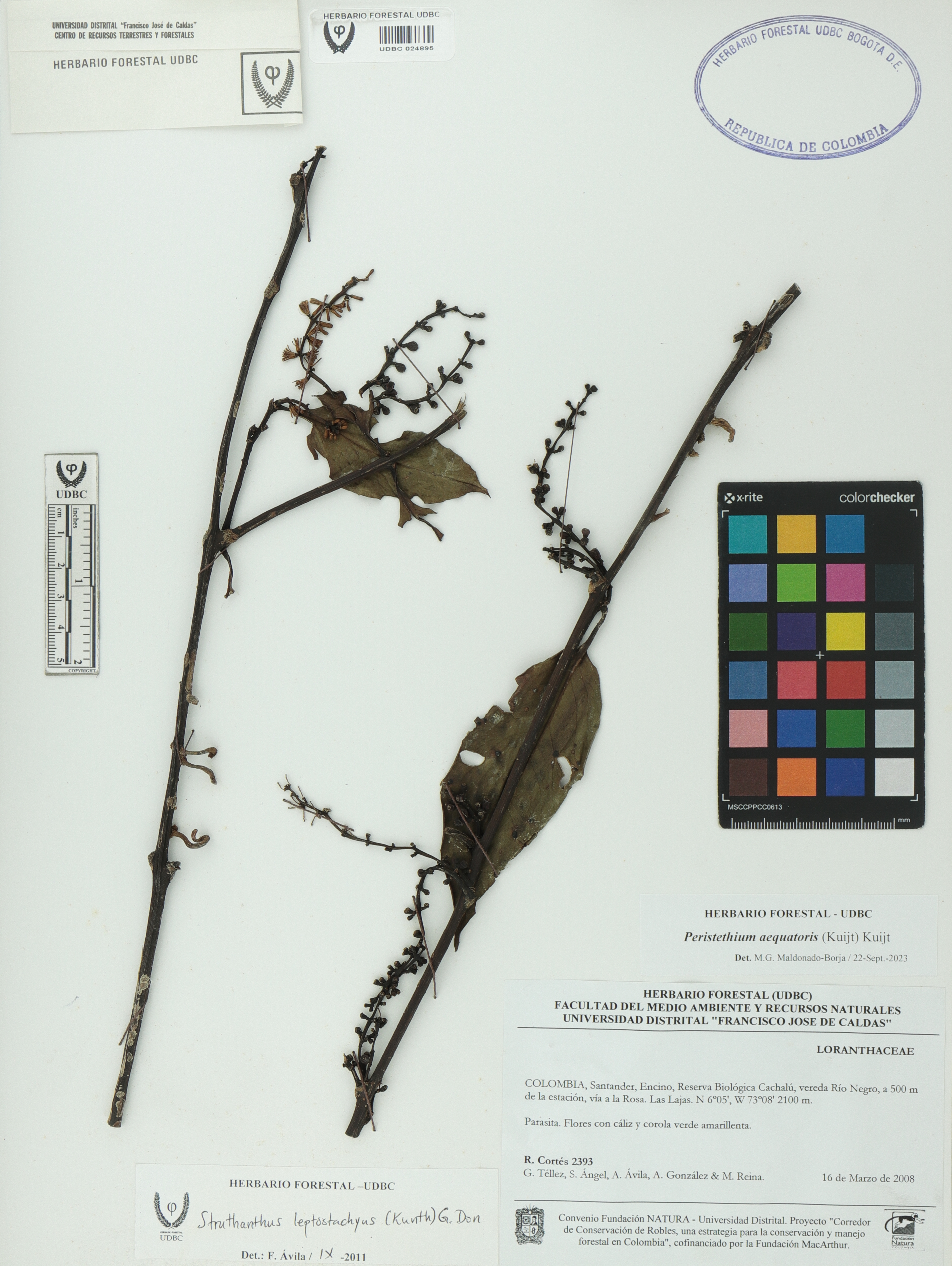 Fotografía del ejemplar Cortés-B., R. 2393, determinado como Peristethium aequatoris en el año 2023
