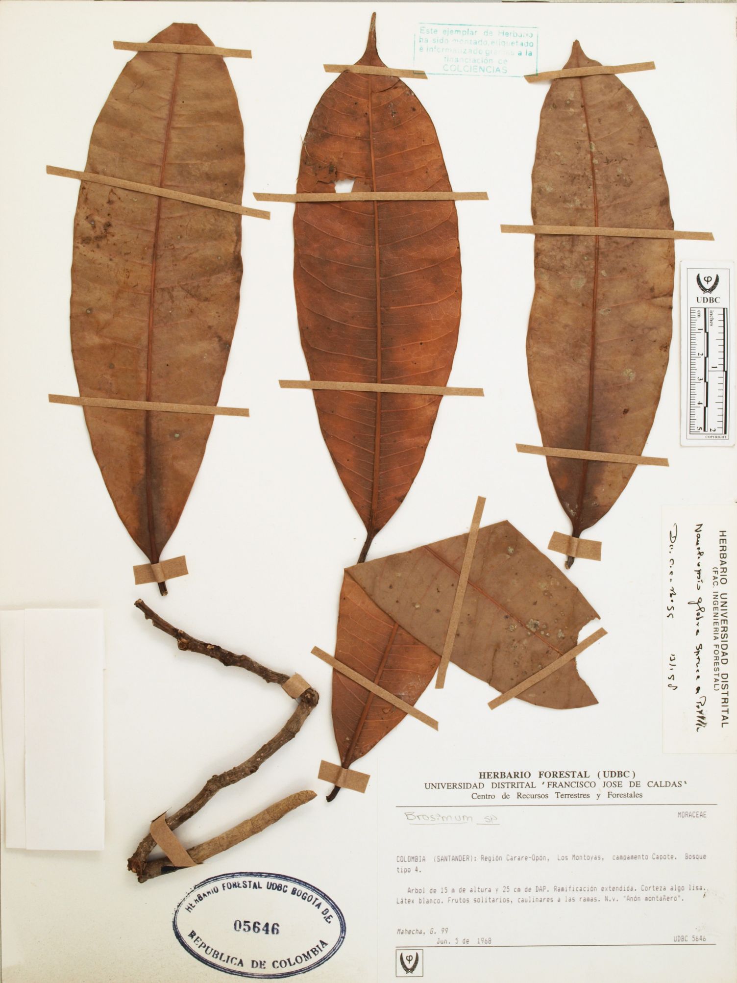 Fotografía del ejemplar Mahecha, G. 99, determinado como Naucleopsis glabra en el año 1997