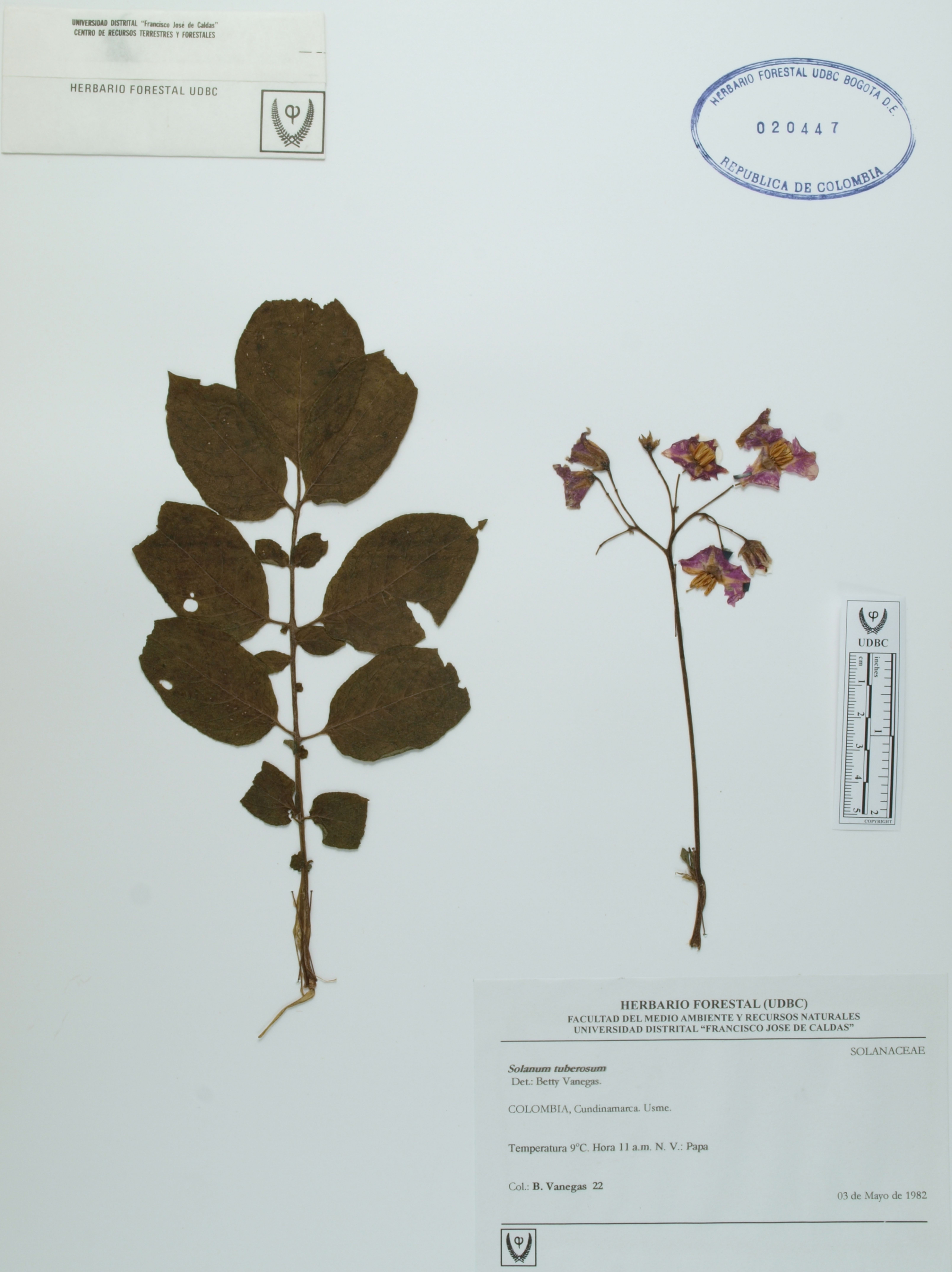 Fotografía del ejemplar Vanegas, B. 22, determinado como Solanum tuberosum