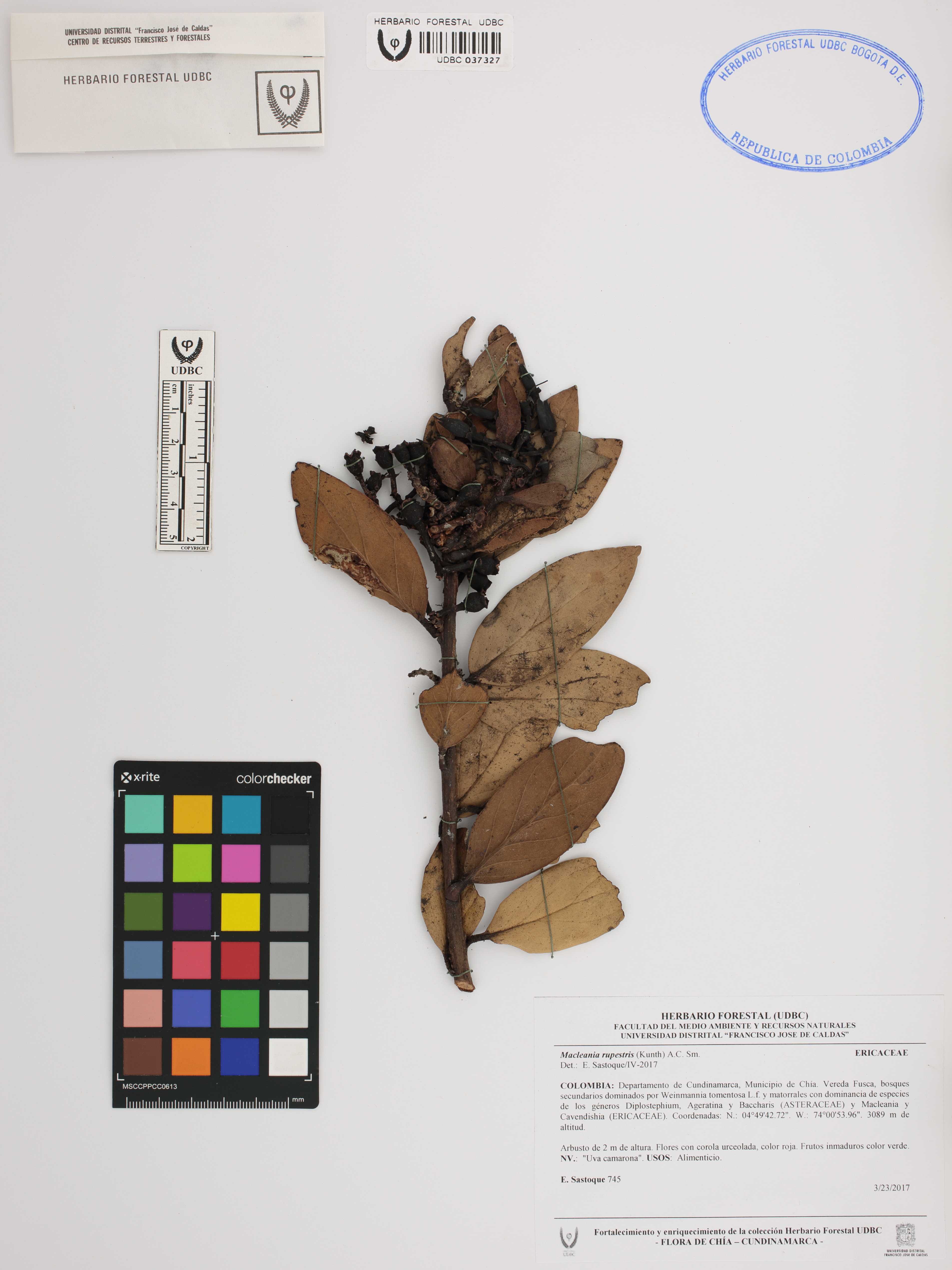 Fotografía del ejemplar Sastoque, E. 745, determinado como Macleania rupestris en el año 2017