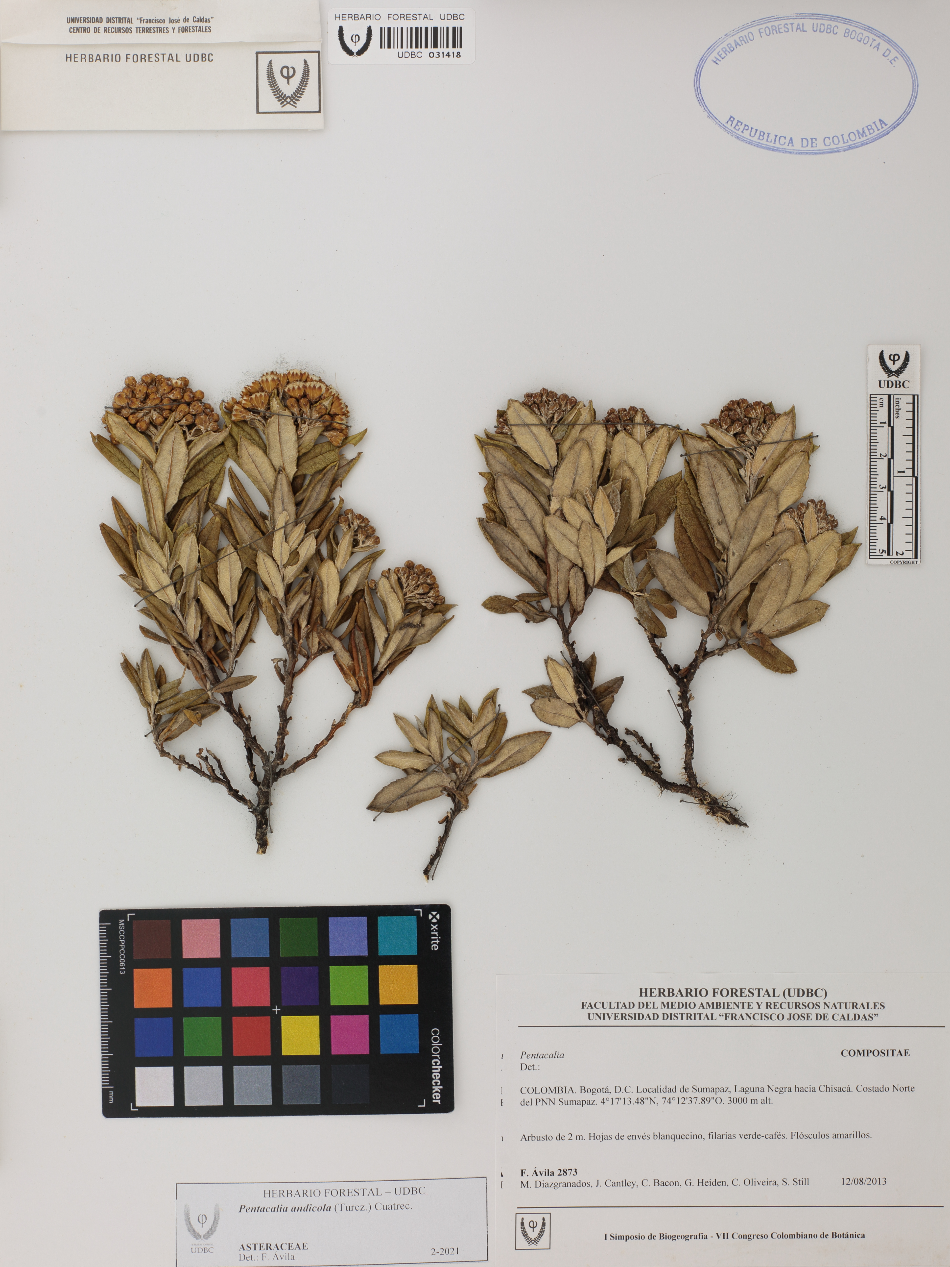 Fotografía del ejemplar Ávila, F. 2873, determinado como Pentacalia andicola en el año 2021