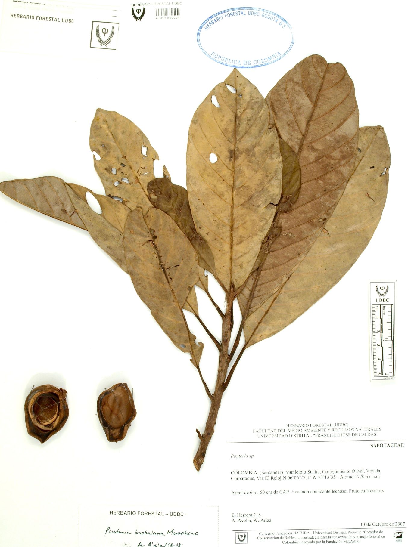 | dc.description | Fotografía del ejemplar Herrera, E. 218, determinado como Pouteria baehniana en el año 2008 | |