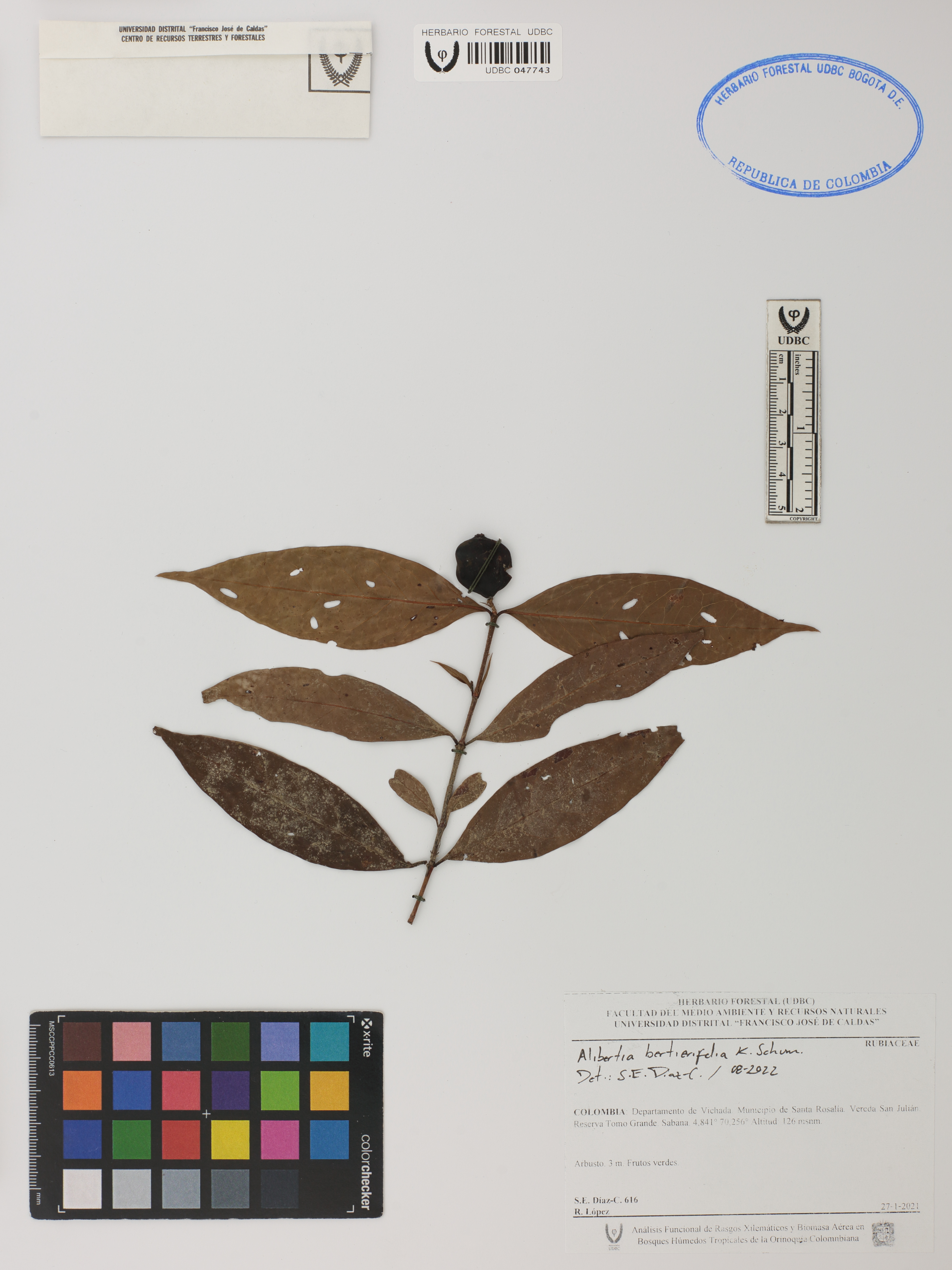 | dc.description | Fotografía del ejemplar Díaz-C., S. 616, determinado como Alibertia bertierifolia en el año 2022 | |