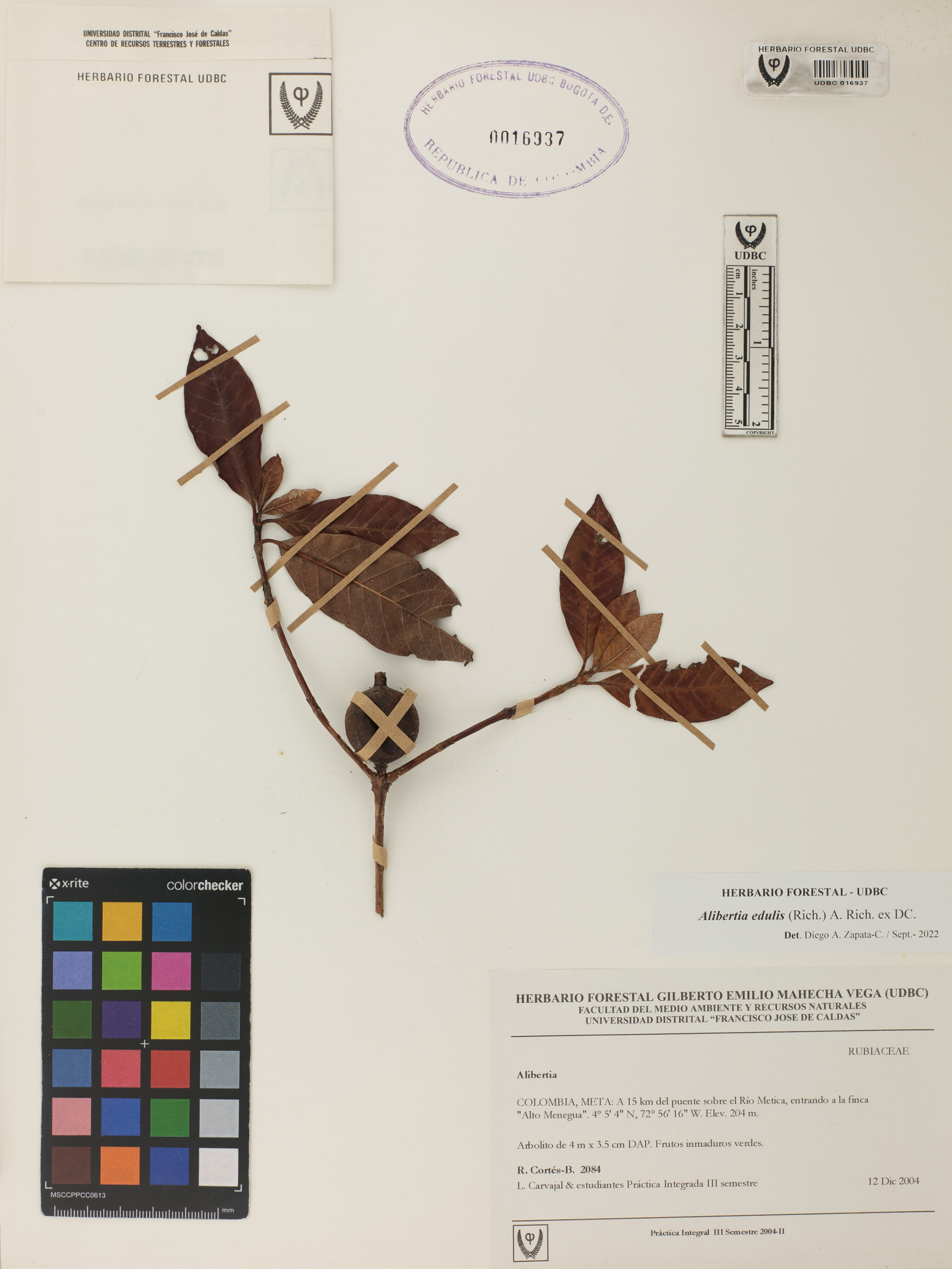 Fotografía del ejemplar Cortés-B., R. 2084, determinado como Alibertia edulis en el año 2022