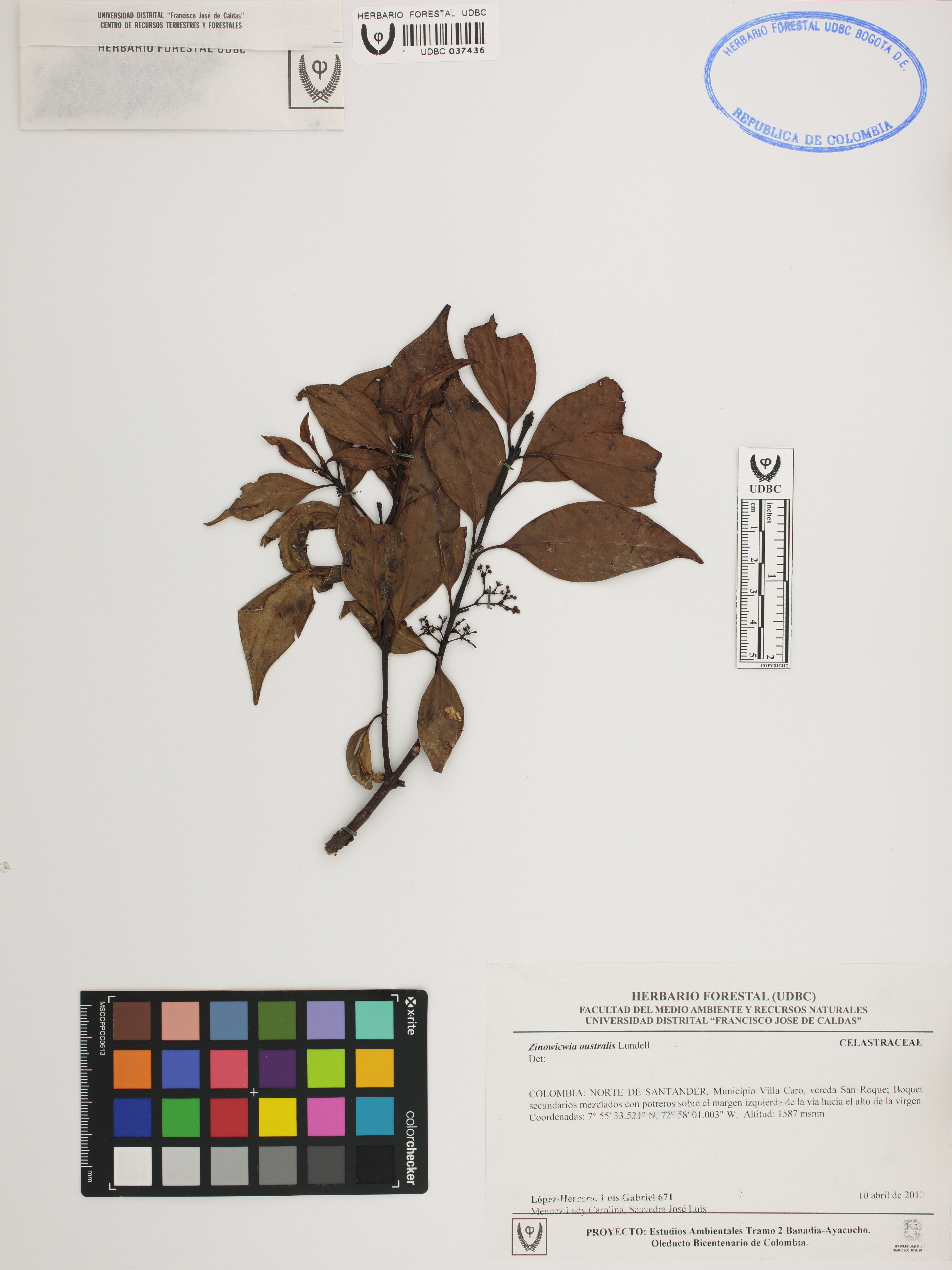 Fotografía del ejemplar López-Herrera, L. 671, determinado como Zinowiewia australis