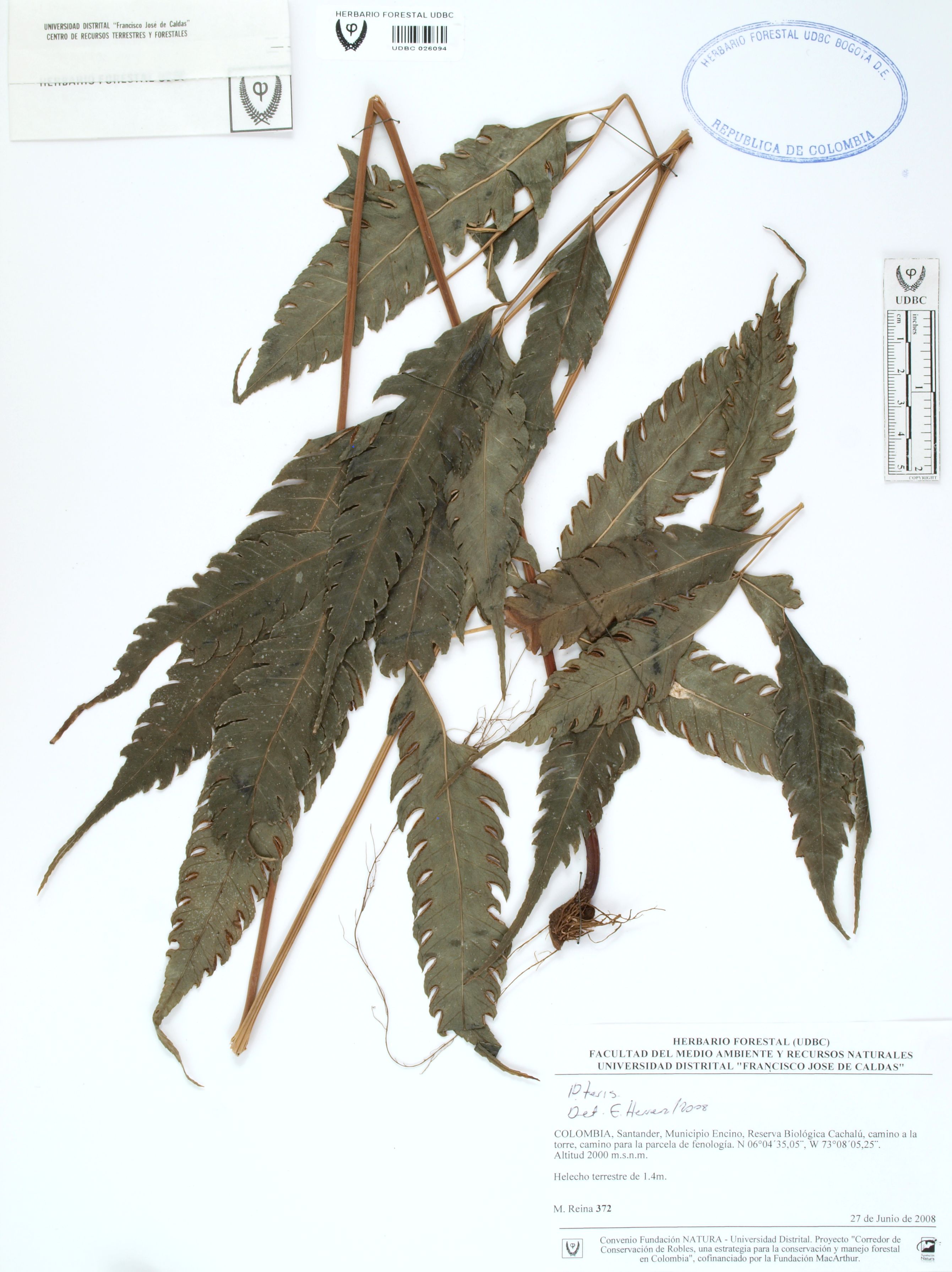 | dc.description | Fotografía del ejemplar Reina, M. 372, determinado como Pteris sp. en el año 2008 | |