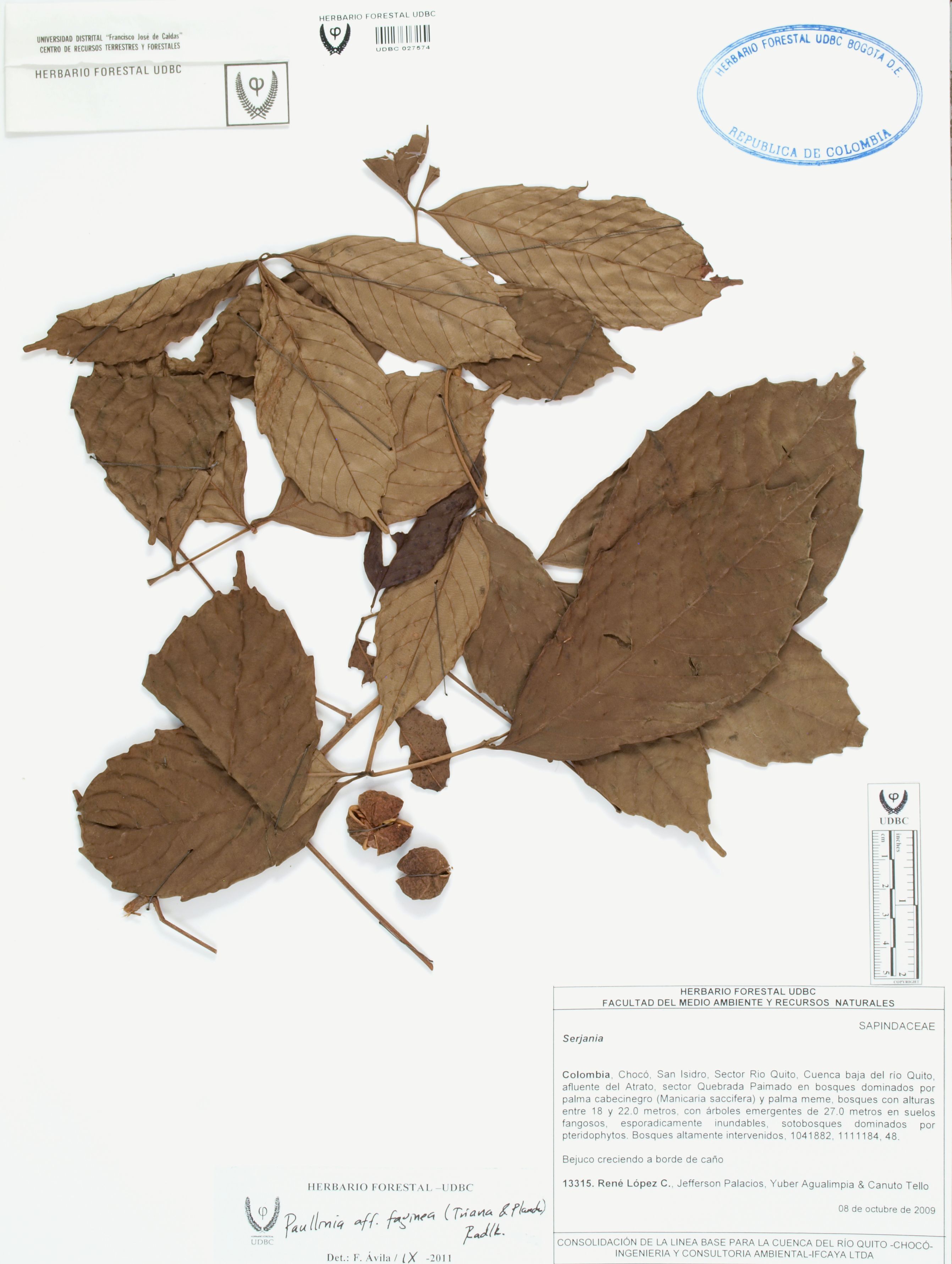 Fotografía del ejemplar López, R. 13315, determinado como Paullinia faginea en el año 2011