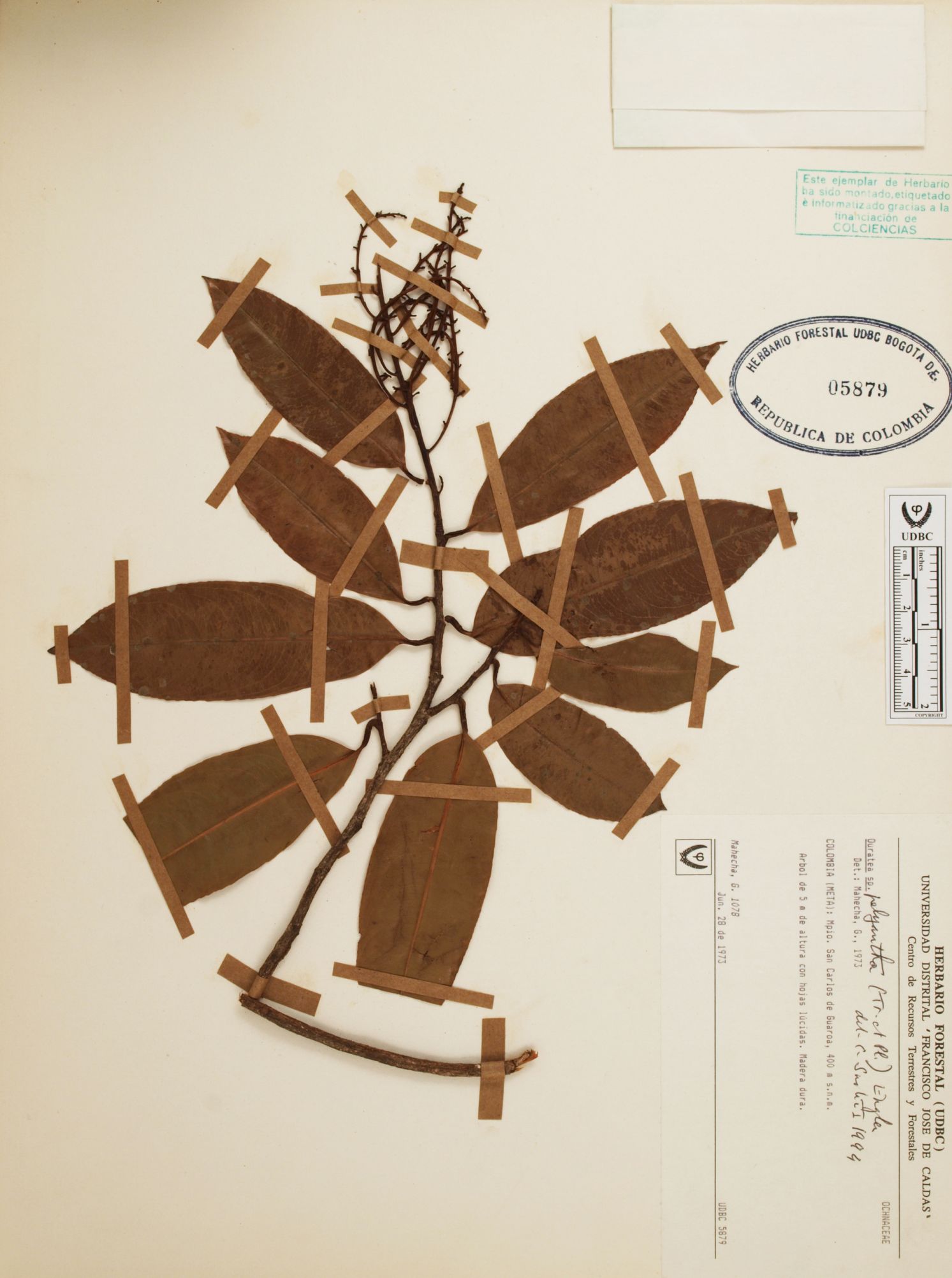 Fotografía del ejemplar Mahecha, G. 1078, determinado como Ouratea polyantha en el año 1994