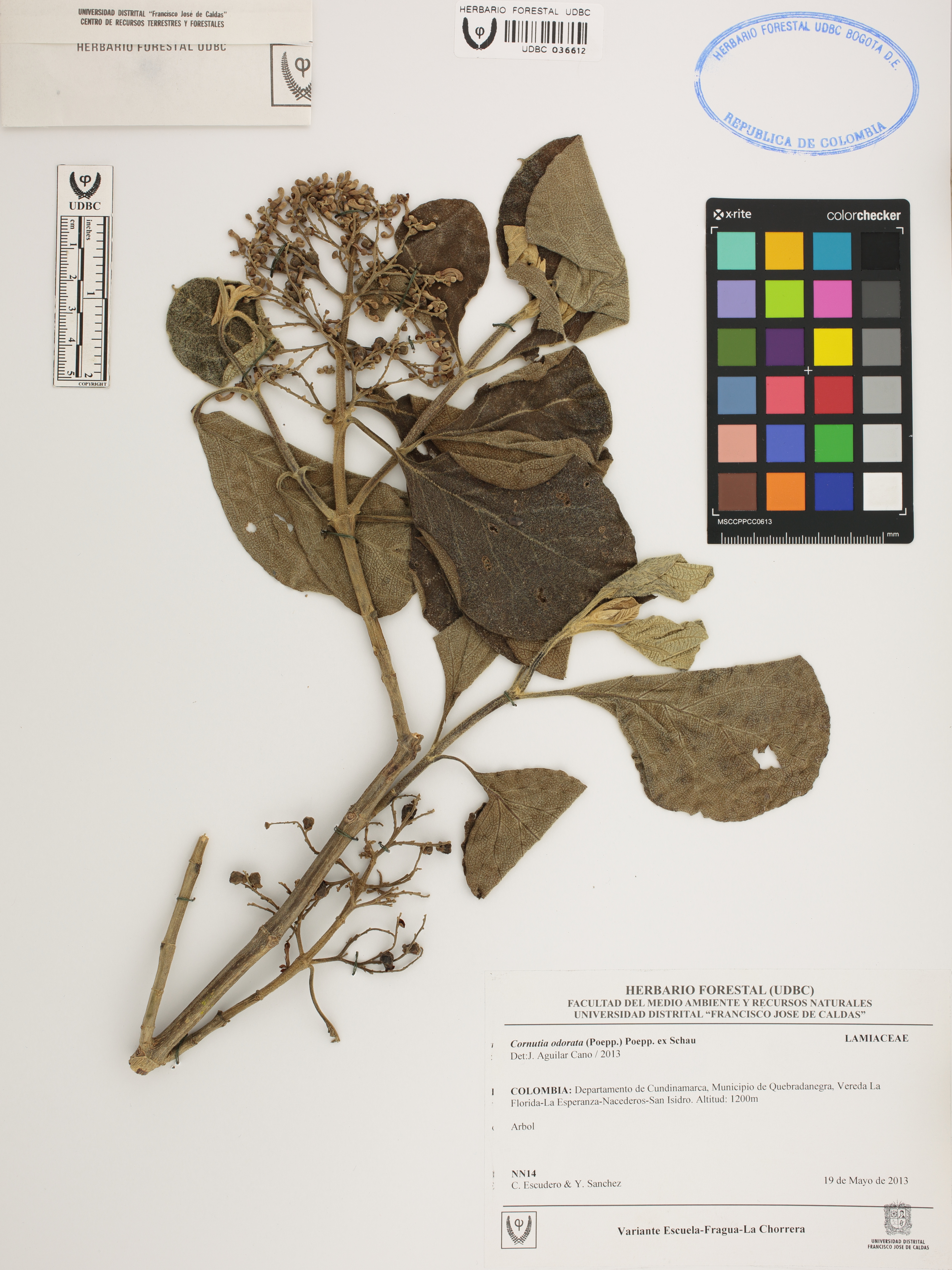 Fotografía del ejemplar Escudero, C. NN 14, determinado como Cornutia odorata en el año 2013