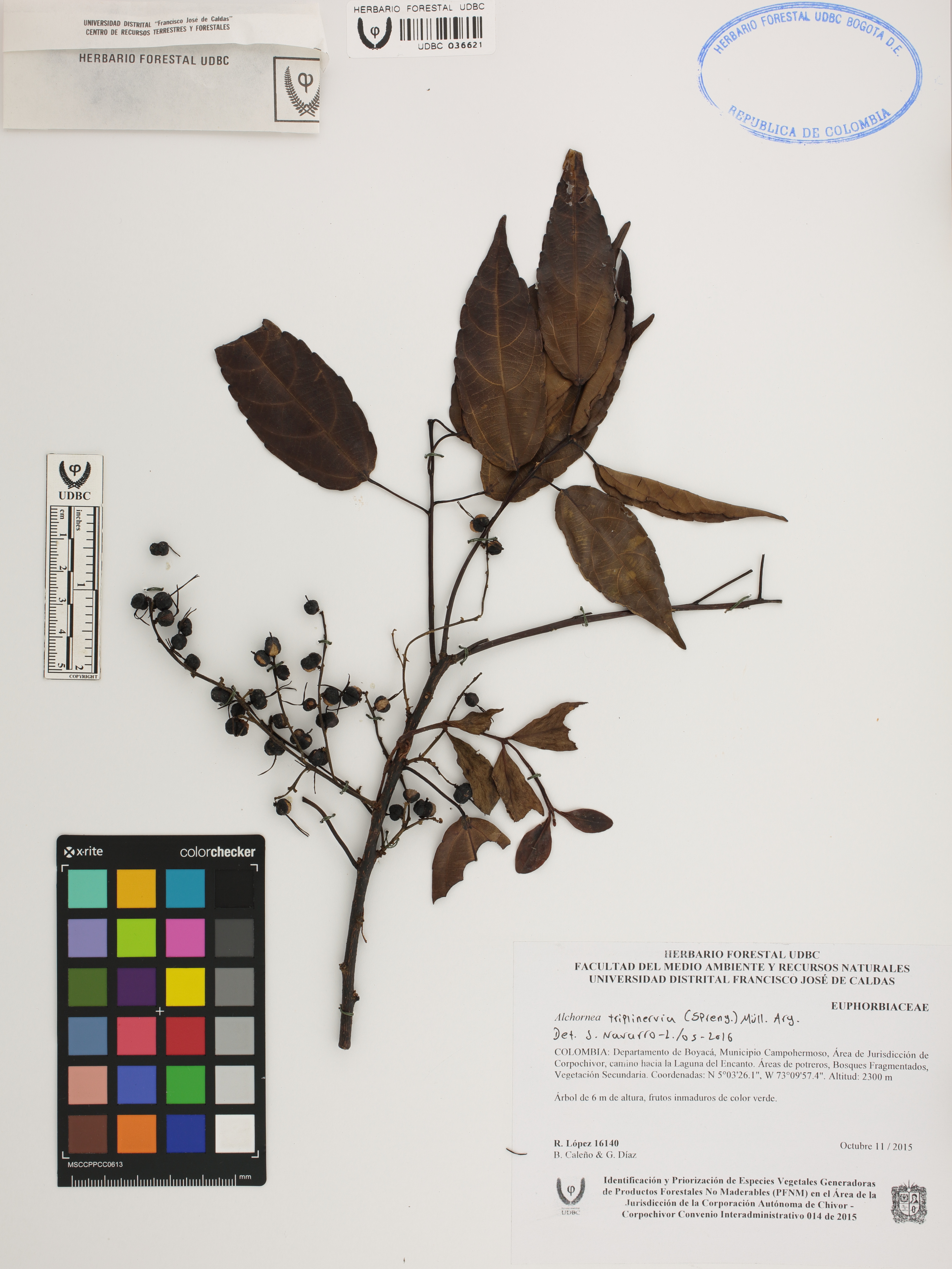 Fotografía del ejemplar López, R. 16140, determinado como Alchornea triplinervia en el año 2015