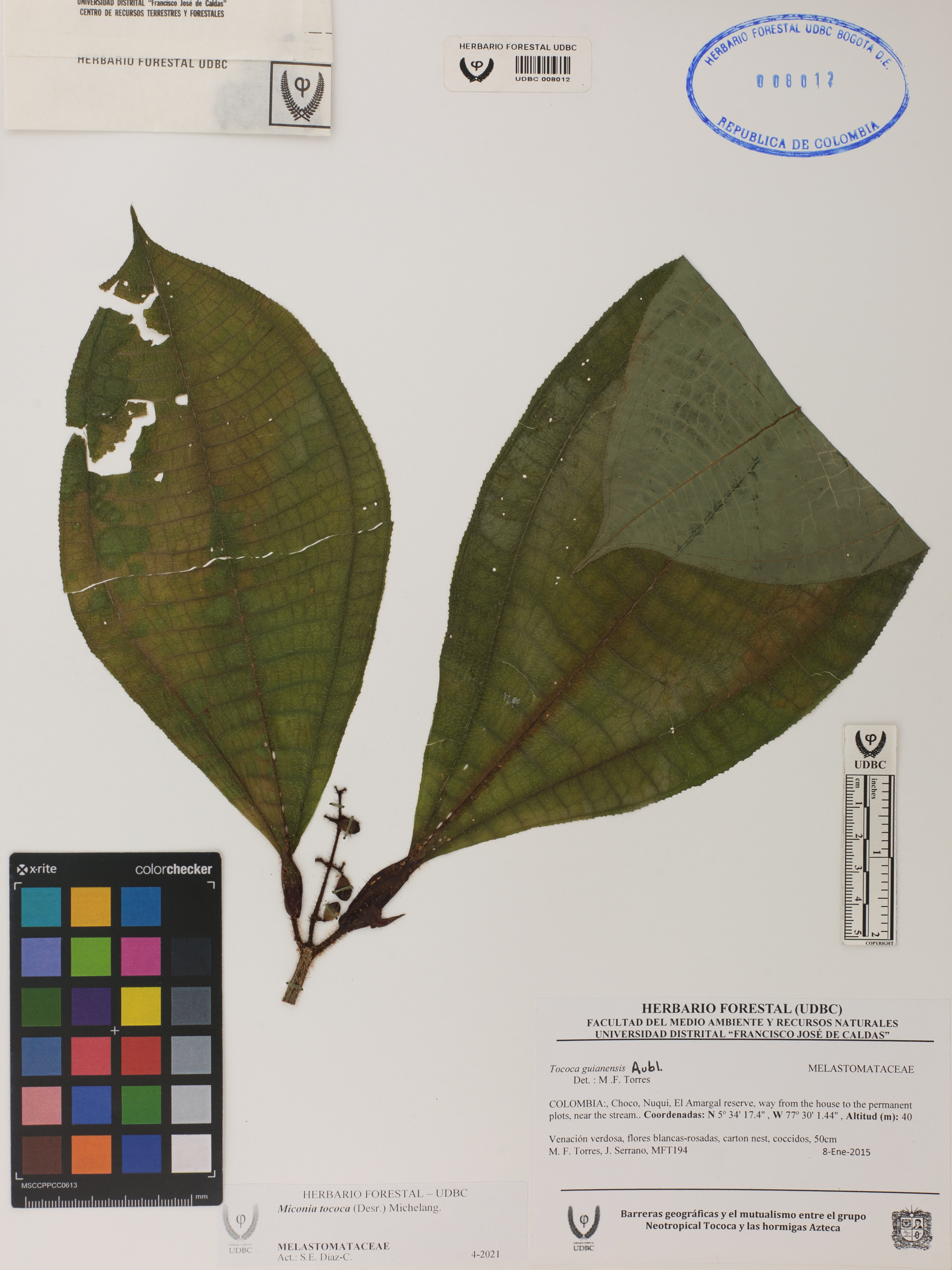 Fotografía del ejemplar Torres, M. 194, determinado como Miconia tococa en el año 2016
