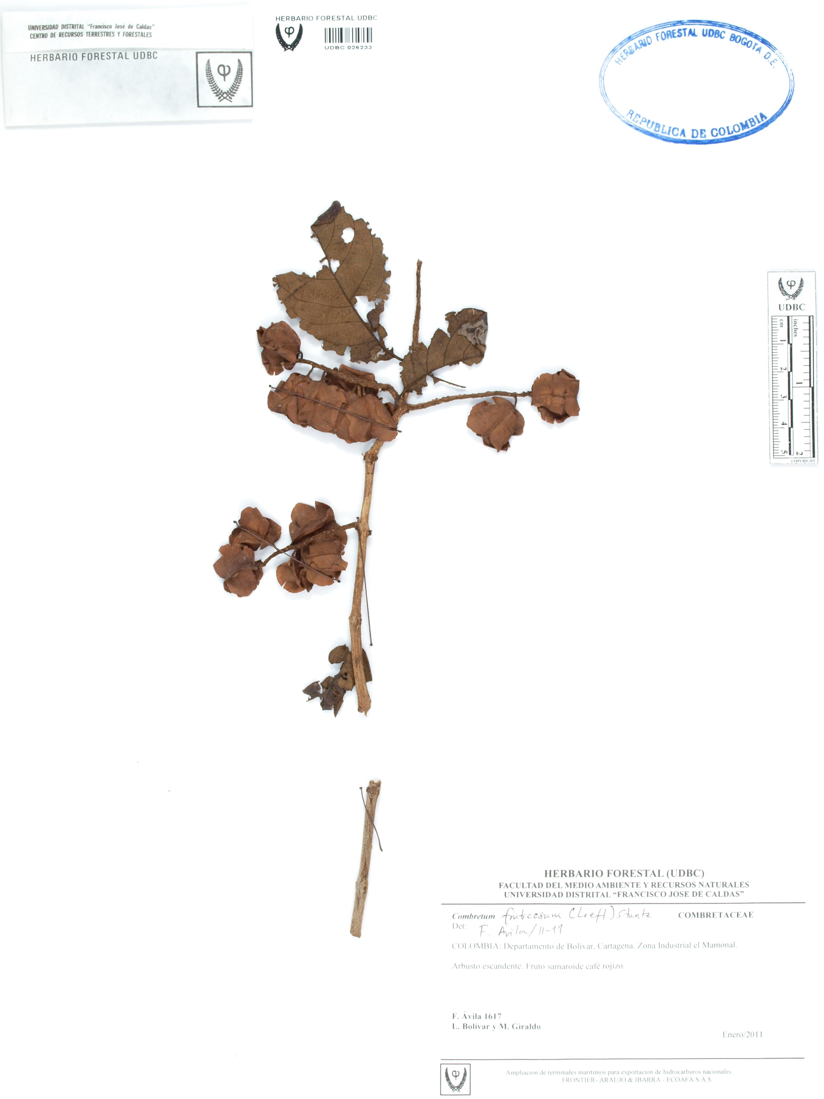 | dc.description | Fotografía del ejemplar Ávila, F. 1617, determinado como Combretum fruticosum en el año 2011 | |