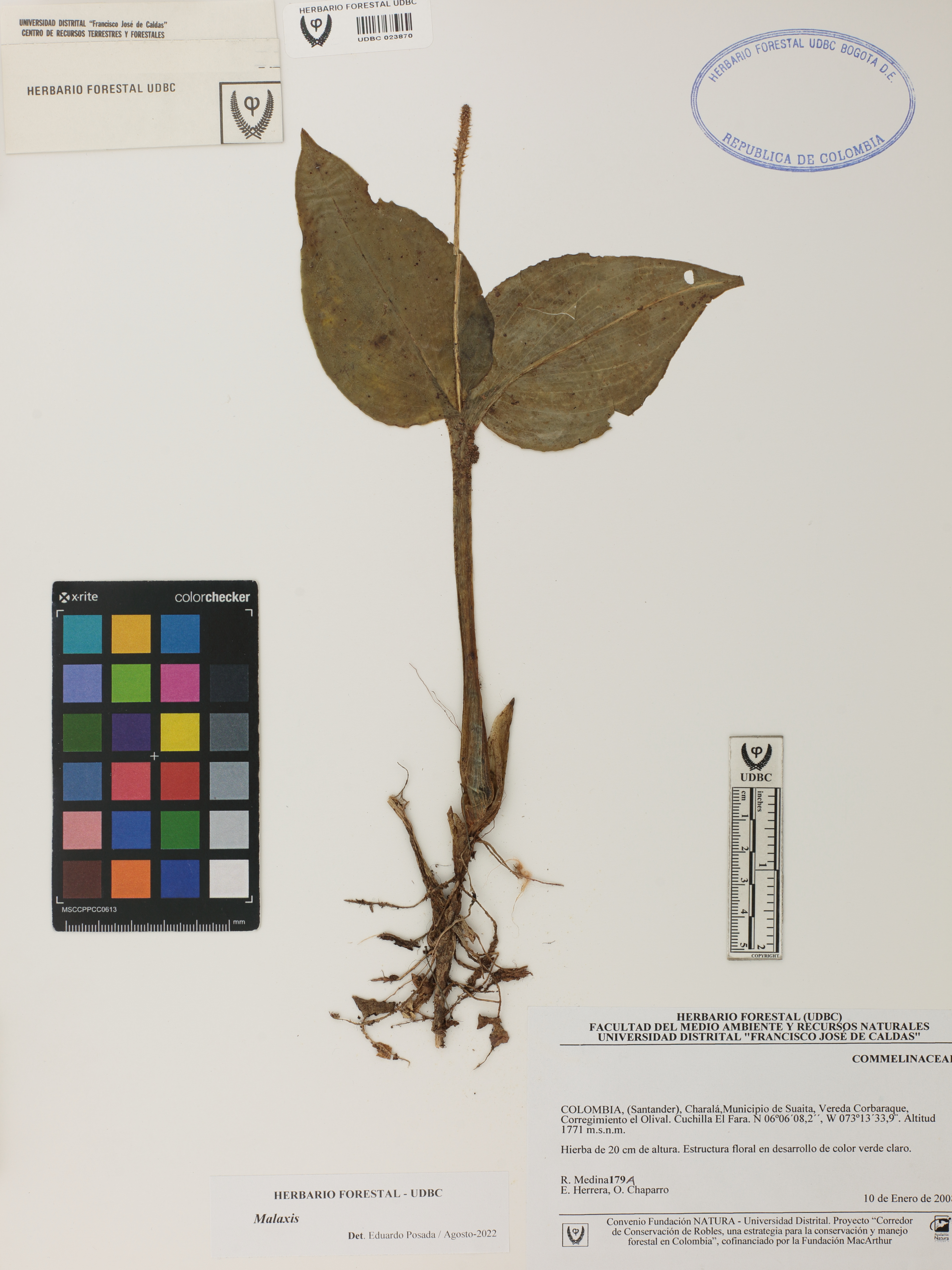 Fotografía del ejemplar Medina, R. 179, determinado como Malaxis sp. en el año 2022