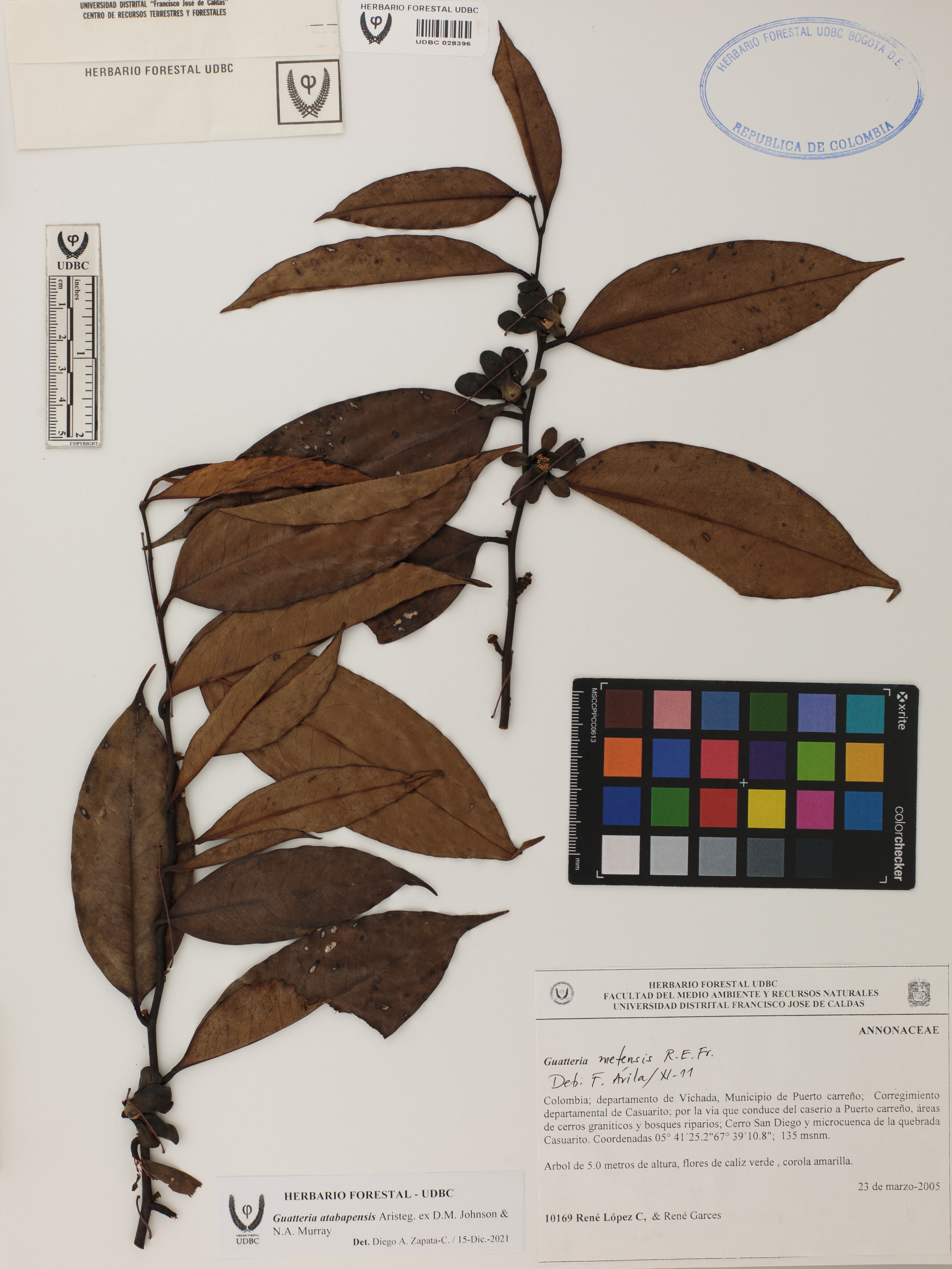Fotografía del ejemplar López, R. 10169, determinado como Guatteria atabapensis en el año 2021