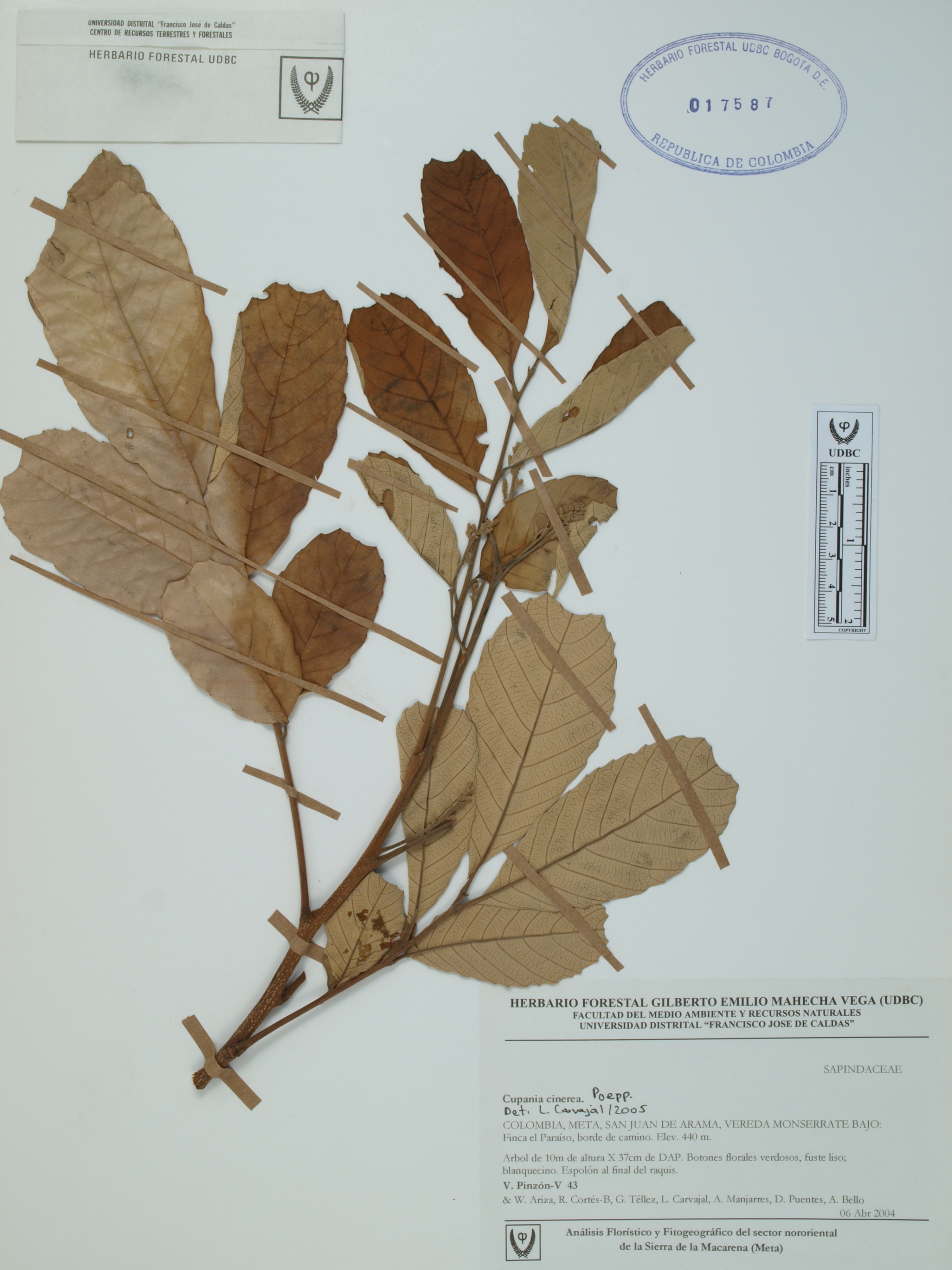 | dc.description | Fotografía del ejemplar Pinzón, V. 43, determinado como Cupania cinerea en el año 2005 | |
