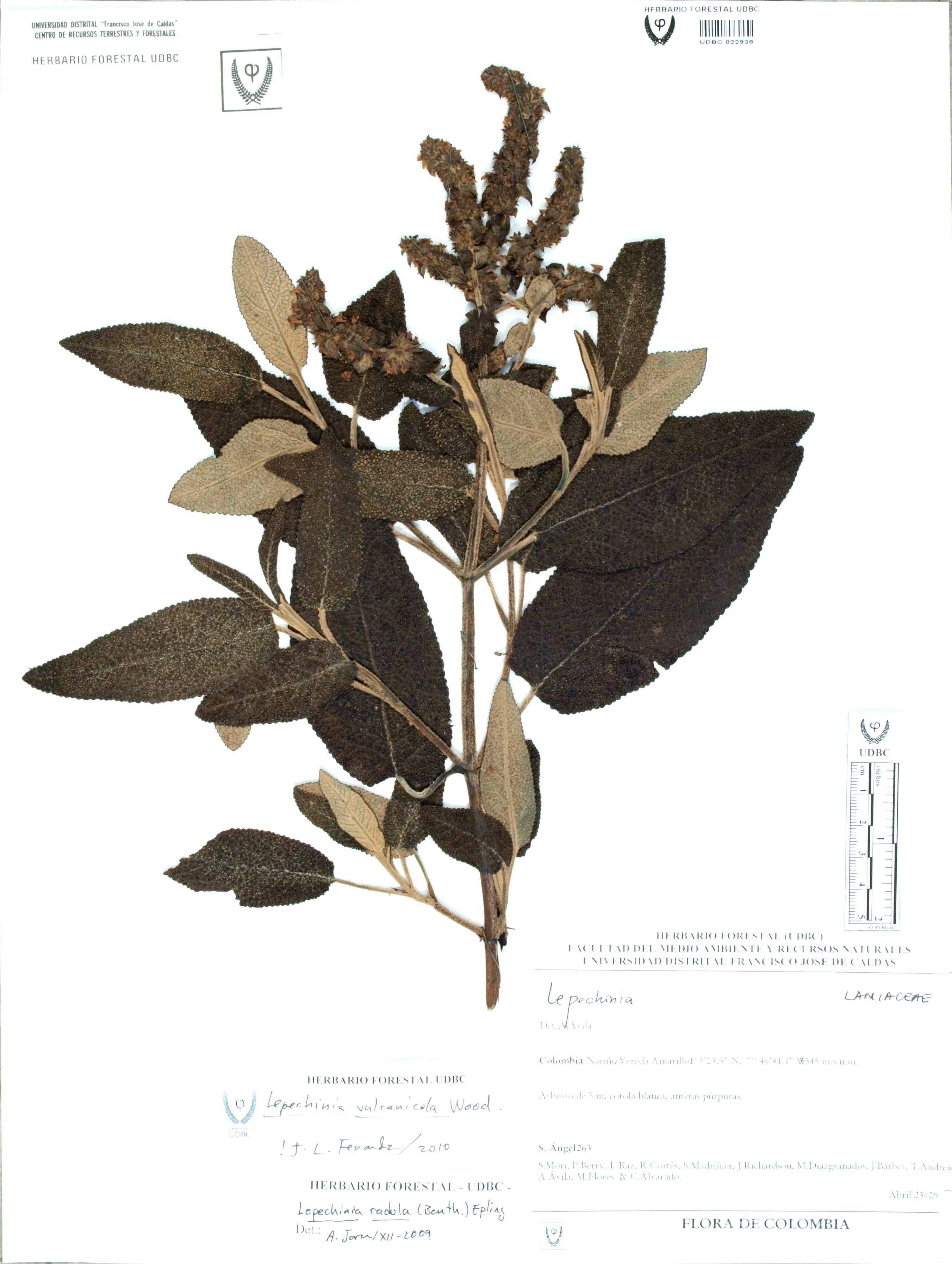 Fotografía del ejemplar Ángel, S. 263, determinado como Lepechinia vulcanicola en el año 2010
