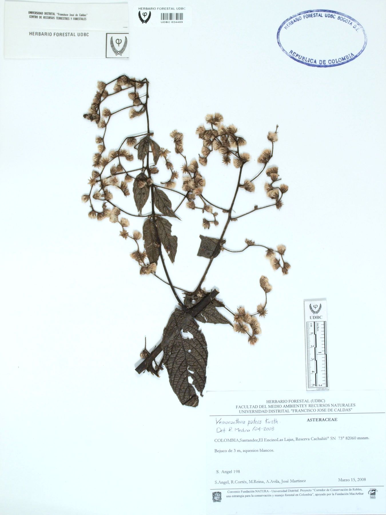Fotografía del ejemplar Ángel, S. 198, determinado como Vernonanthura patens en el año 2008
