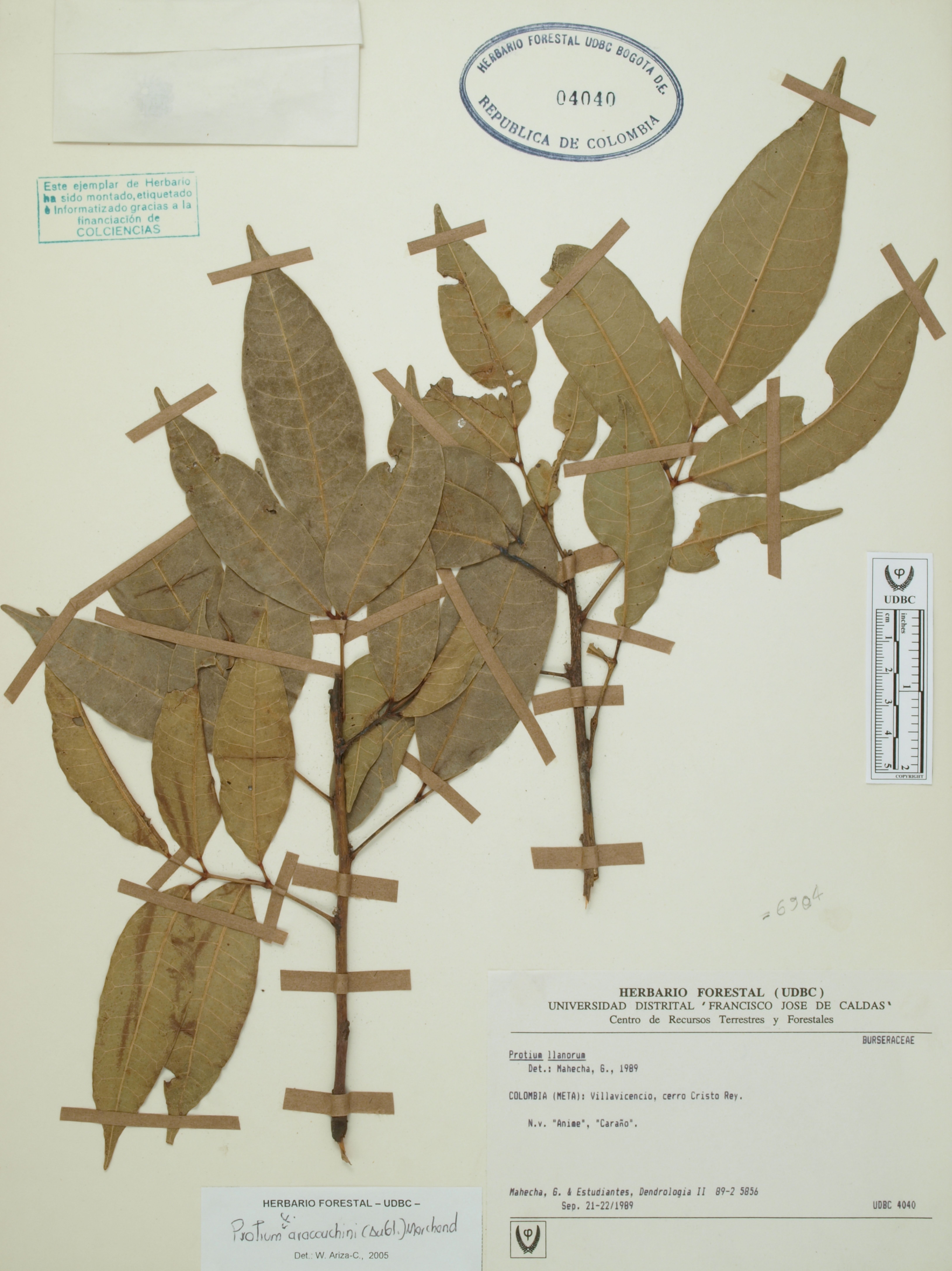 Fotografía del ejemplar Mahecha, G. 5856, determinado como Protium heptaphyllum en el año 2022