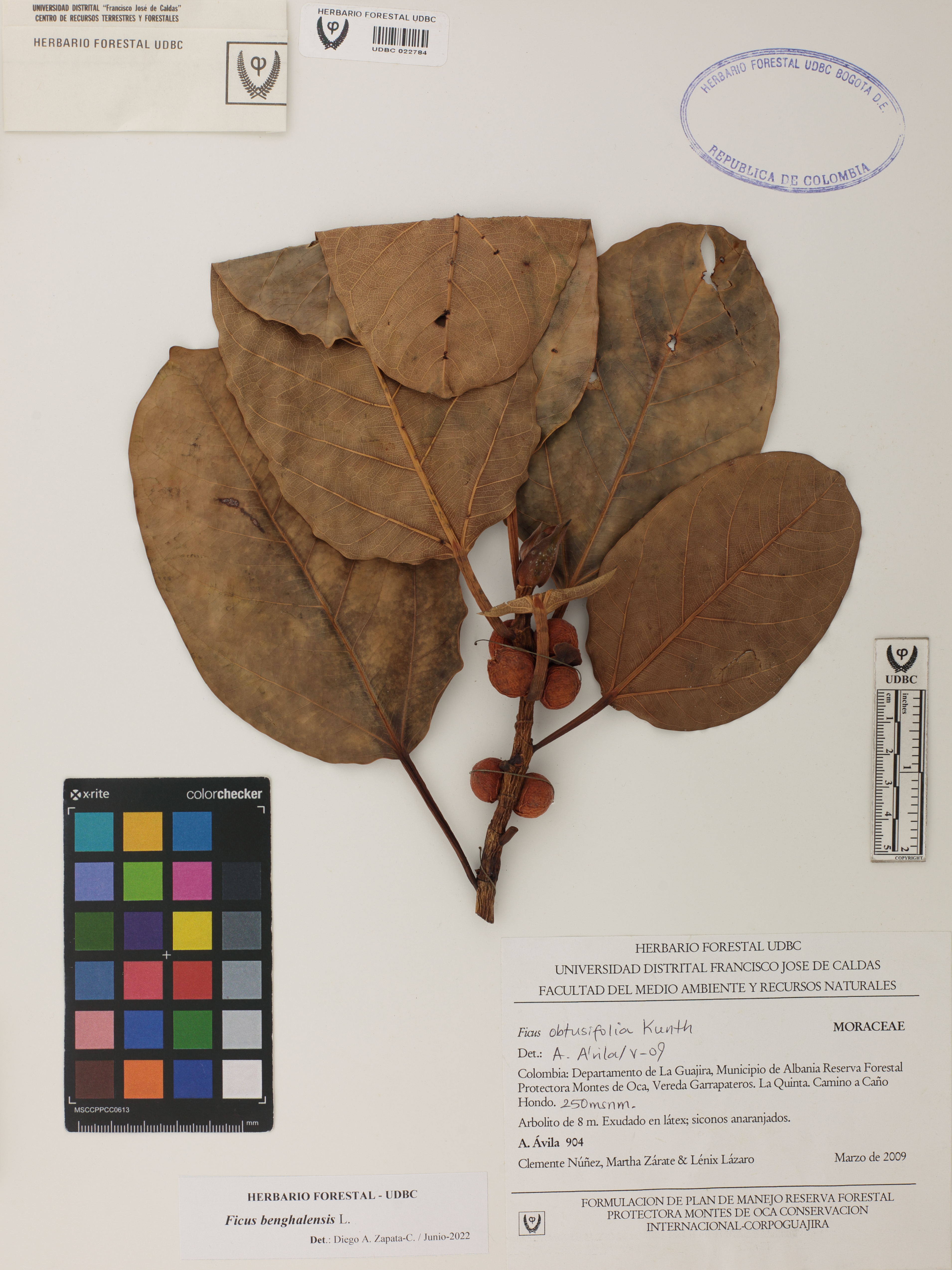 Fotografía del ejemplar Ávila, F. 904, determinado como Ficus benghalensis en el año 2022