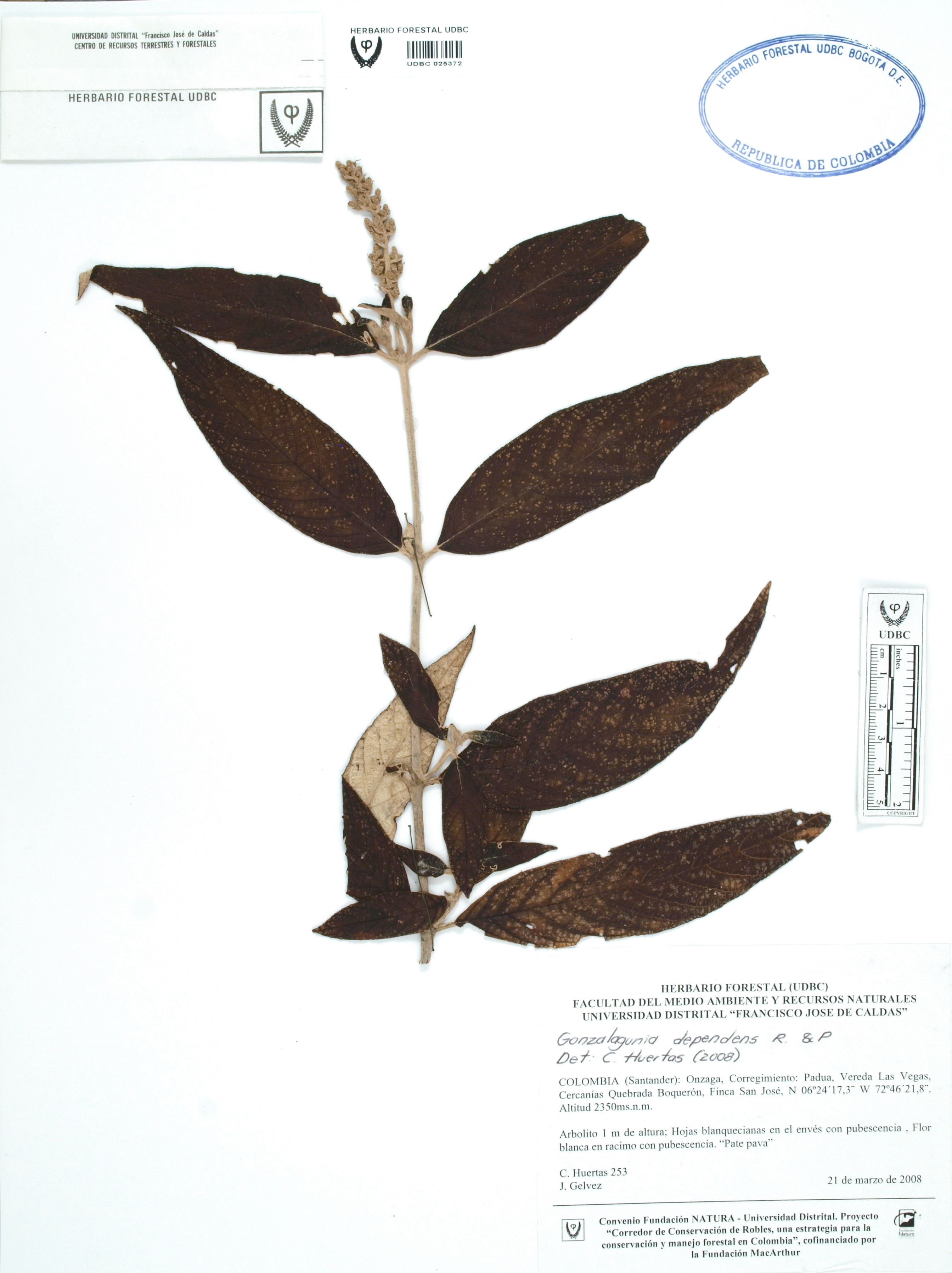 Fotografía del ejemplar Huertas, C. 253, determinado como Gonzalagunia dependens en el año 2008