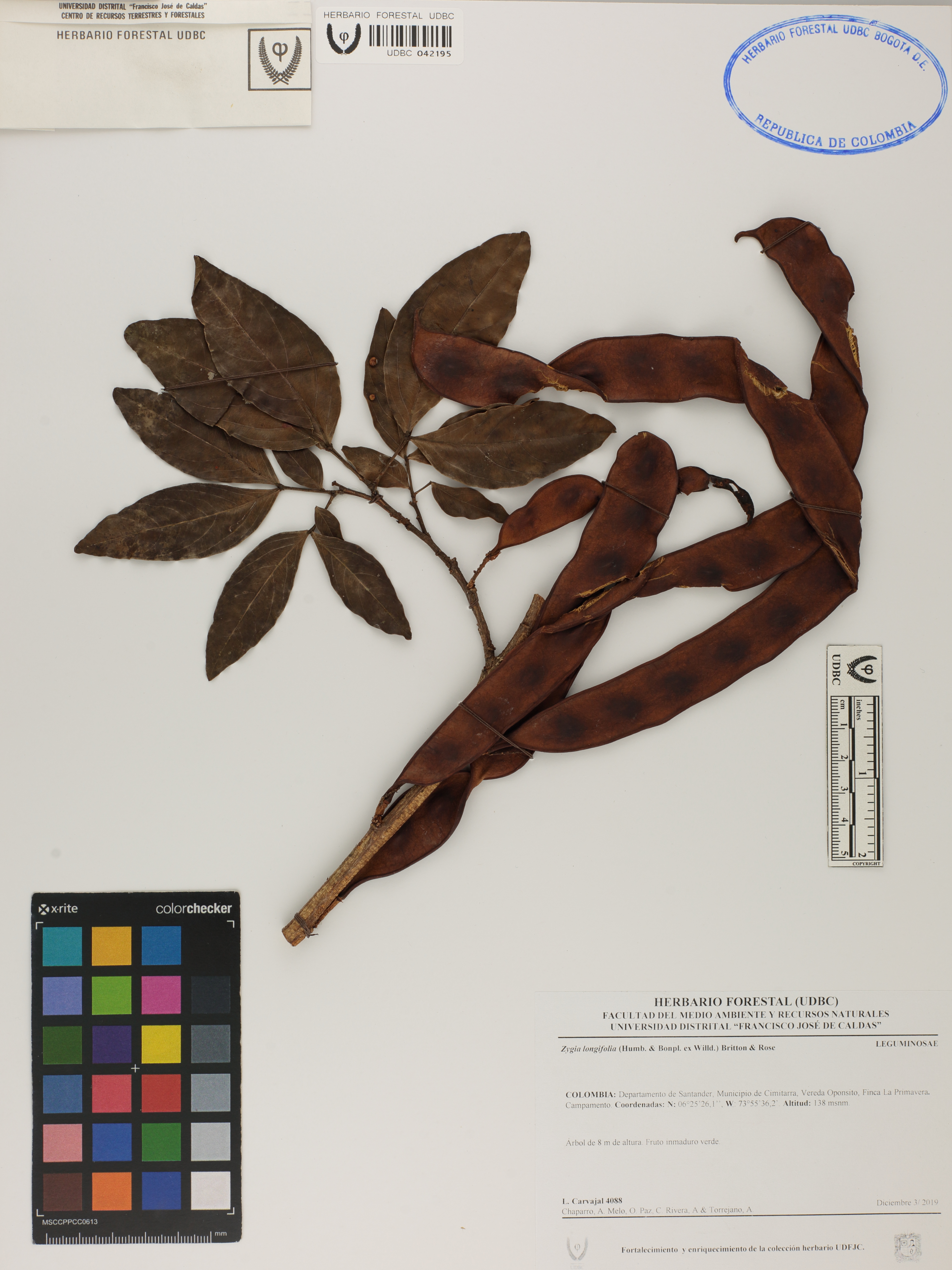 Fotografía del ejemplar Carvajal, L. 4088, determinado como Zygia longifolia